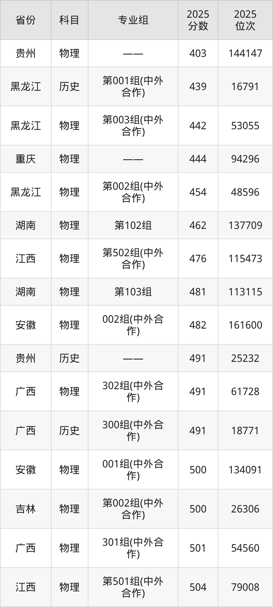 物理类:2025年温州肯恩大学录取最低分是403分(贵州),对应的位次排名是144147名。