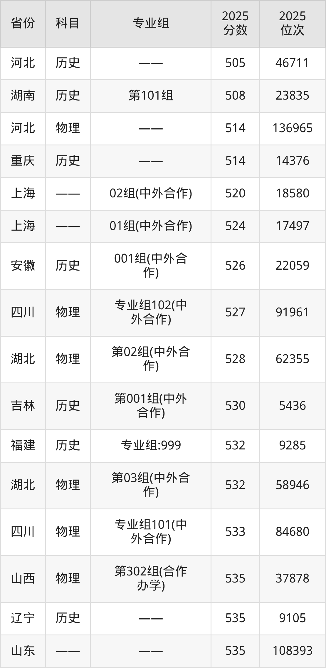 3+3地区:2025年温州肯恩大学录取最低分是520分(上海),对应的位次排名是18580名。
