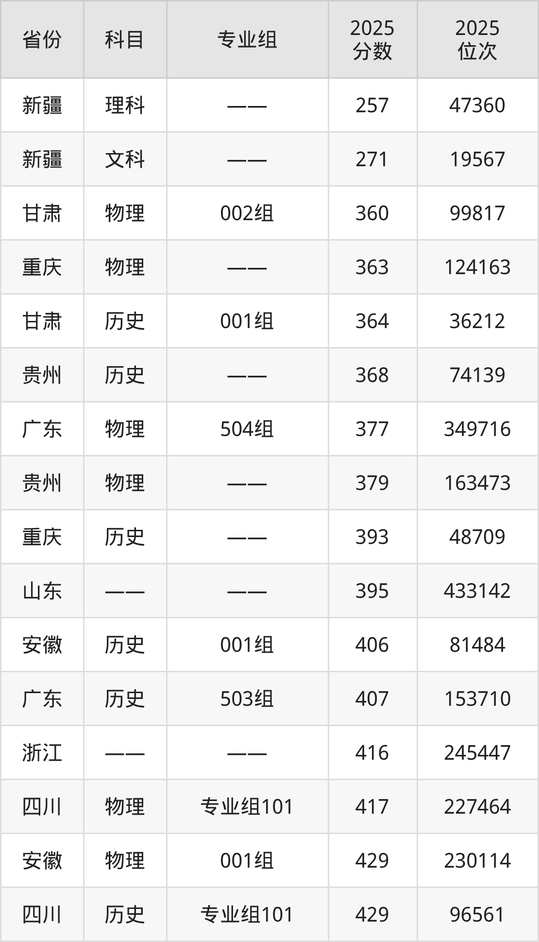 历史类:2025年四川化工职业技术学院录取最低分是364分(甘肃),对应的位次排名是36212名。