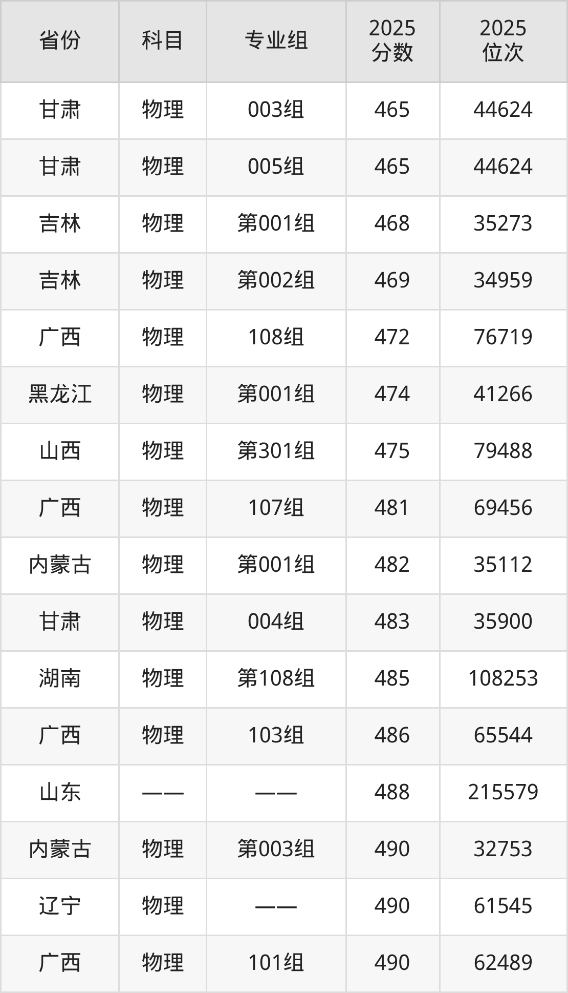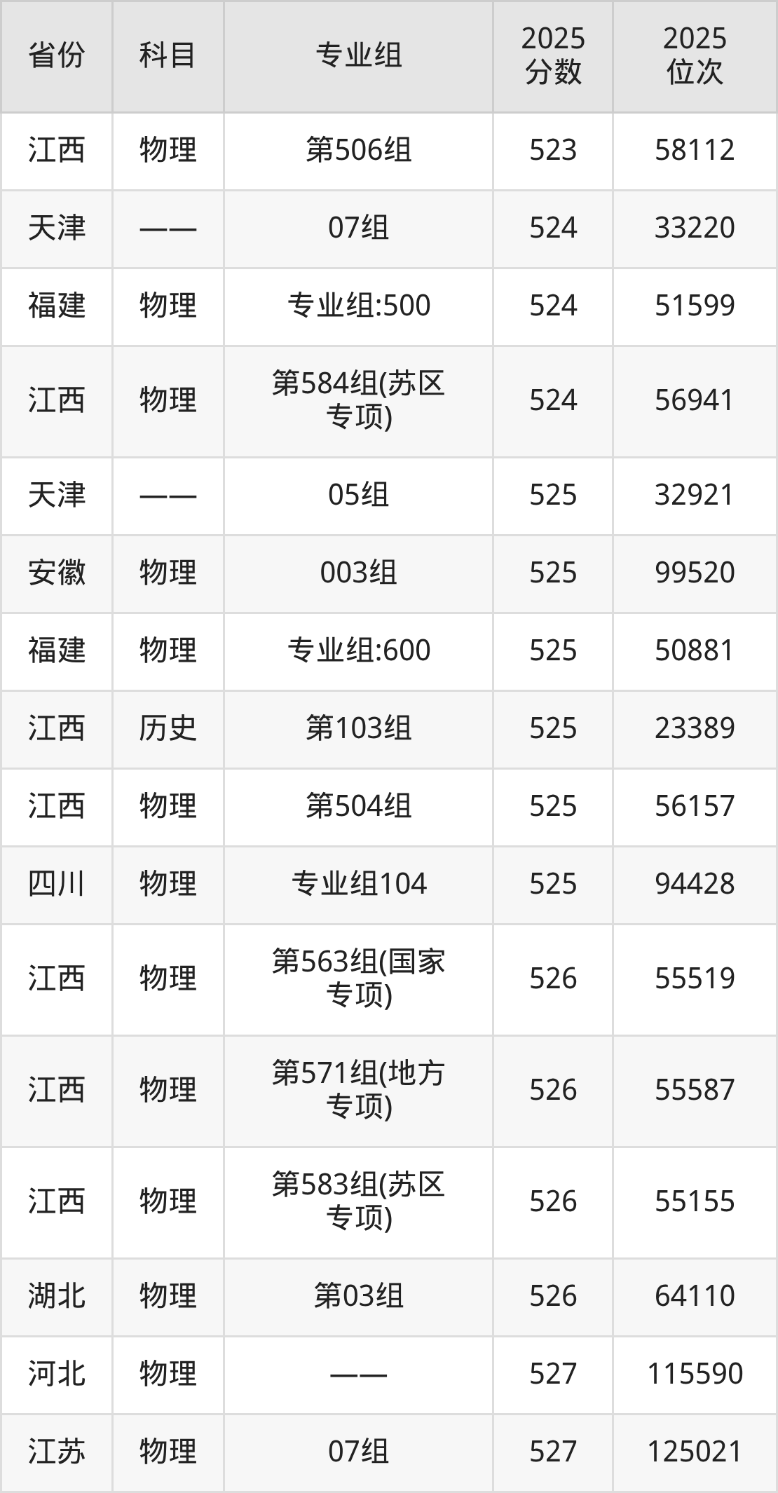 物理类:2025年江西农业大学录取最低分是424分(贵州),对应的位次排名是123269名。