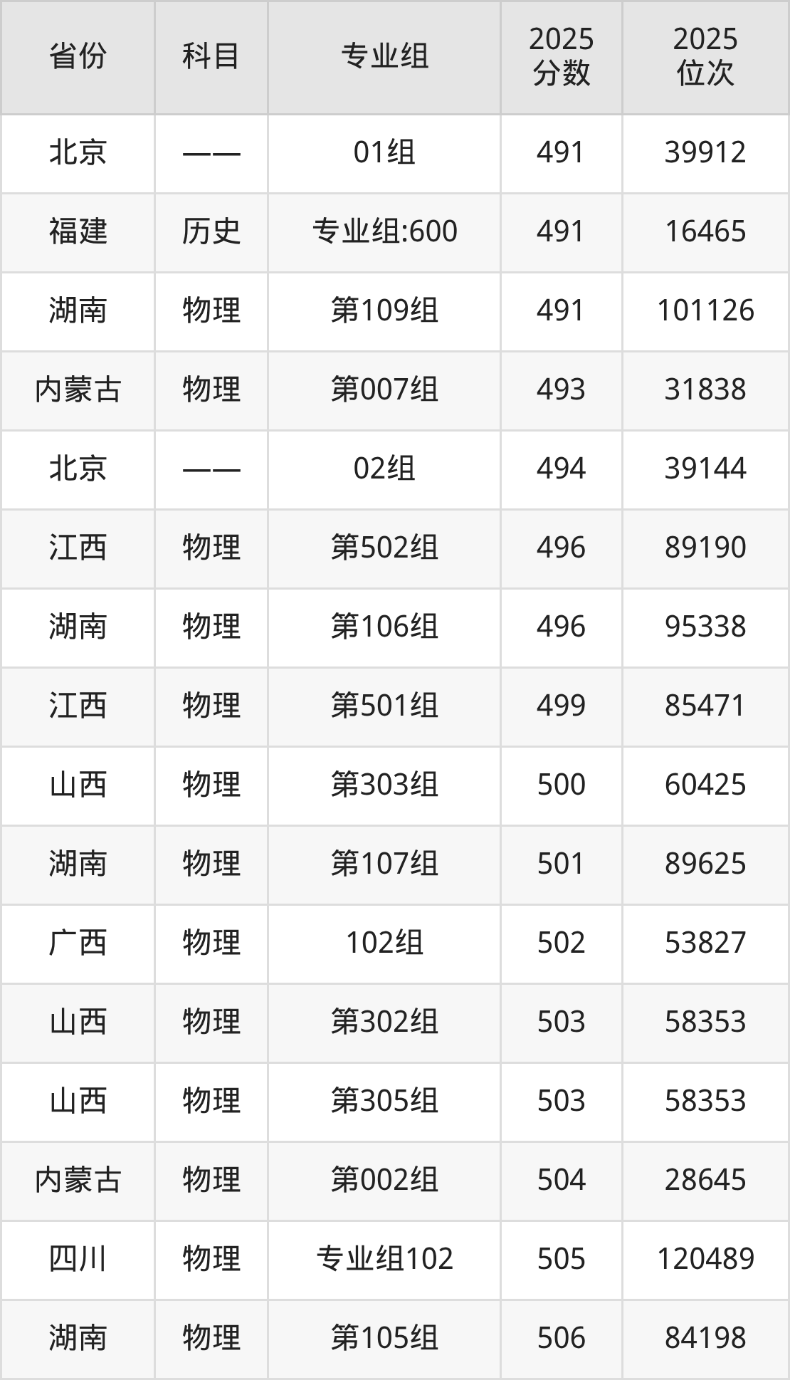 历史类:2025年江西农业大学录取最低分是491分(福建),对应的位次排名是16465名。