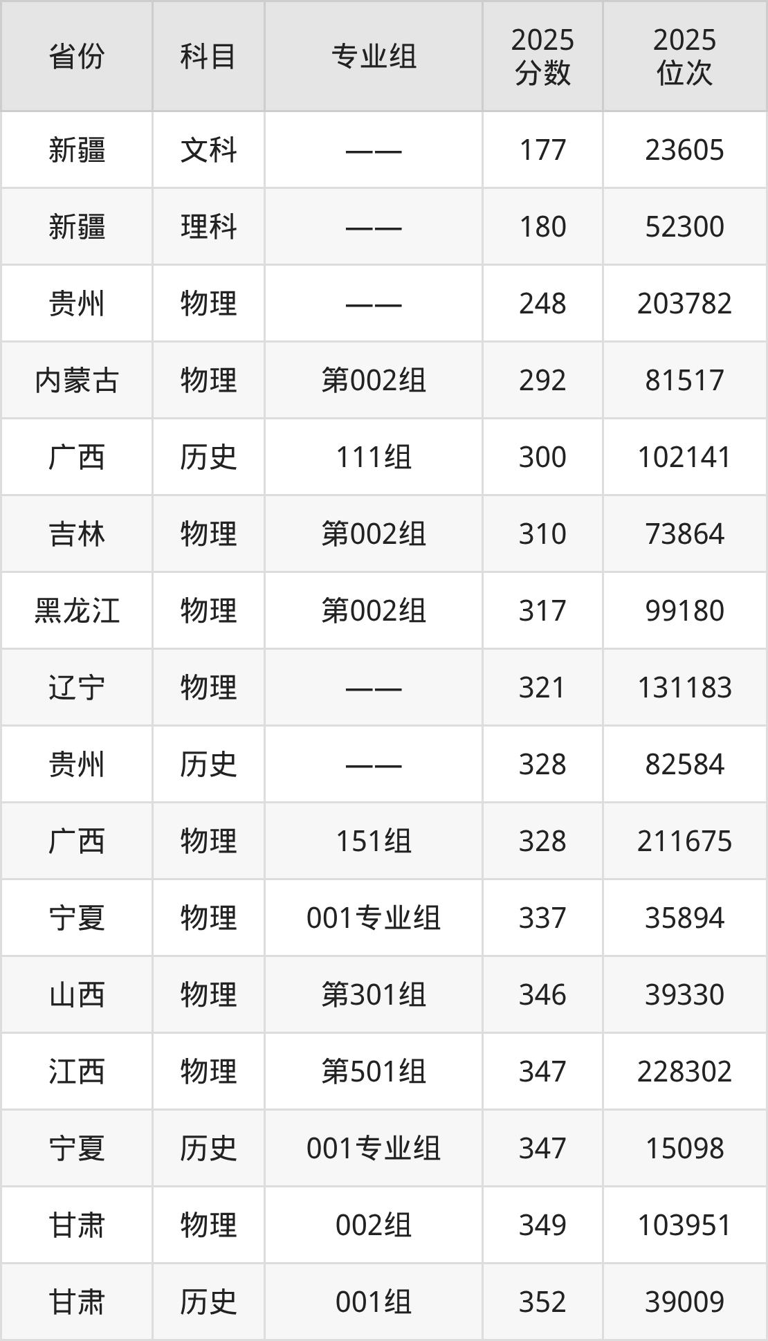 理科:2025年天津城市职业学院录取最低分是180分(新疆),对应的位次排名是52300名。