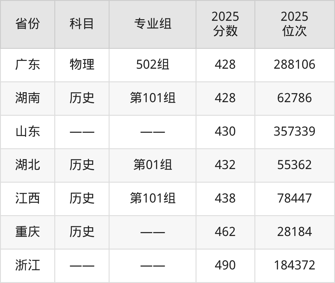 3+3地区:2025年天津城市职业学院录取最低分是425分(浙江),对应的位次排名是240268名。
