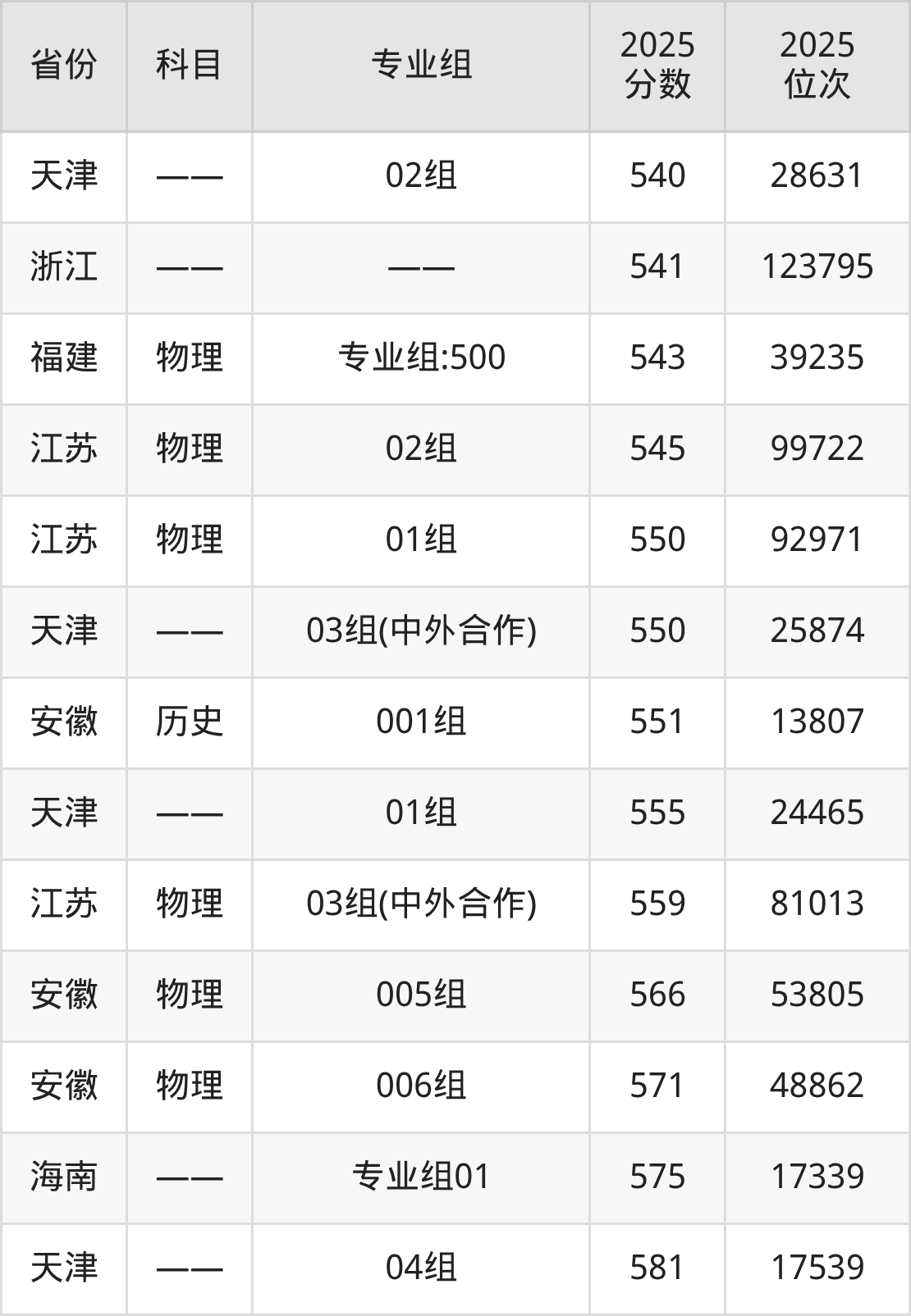 2025年安徽理工大学全国录取分数线一览表: