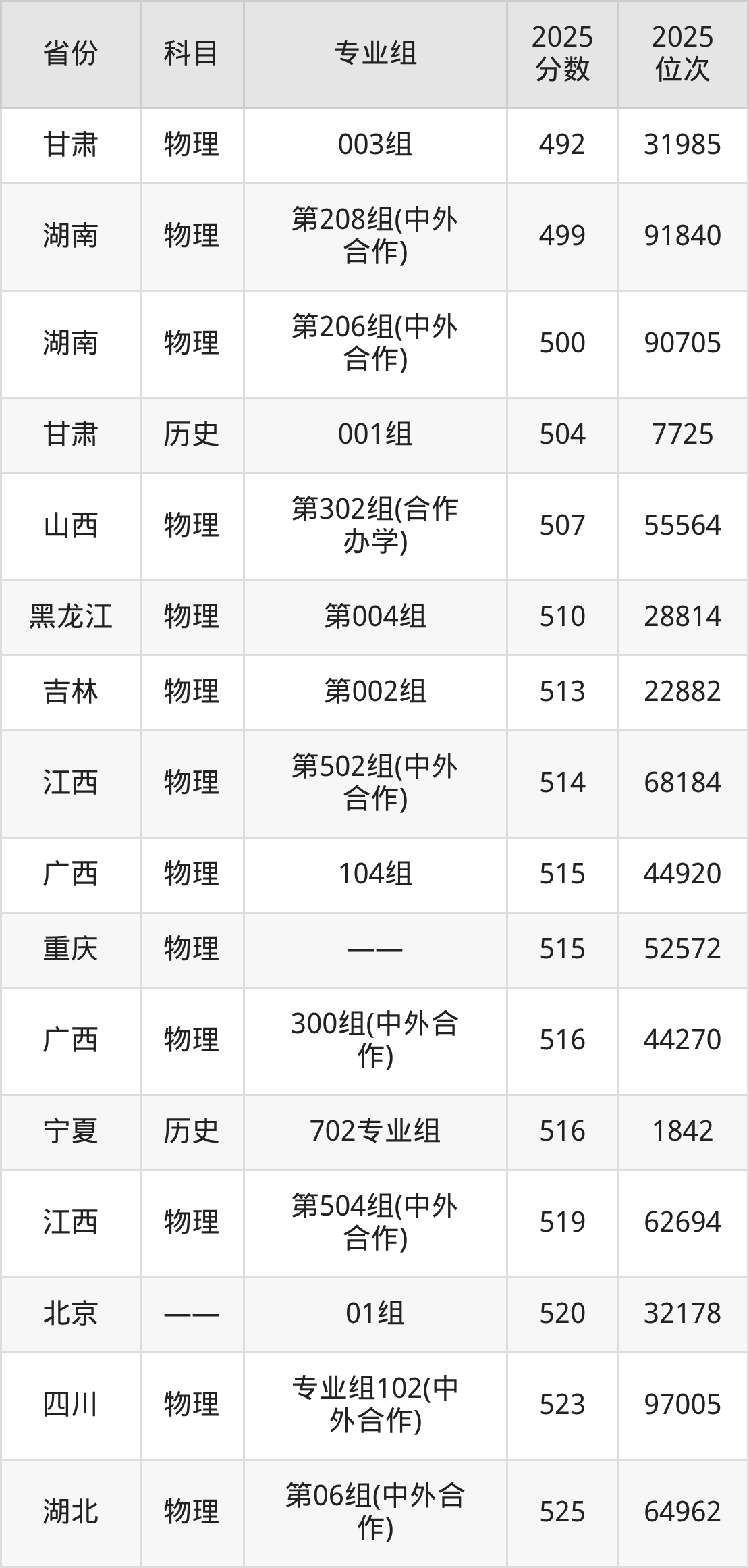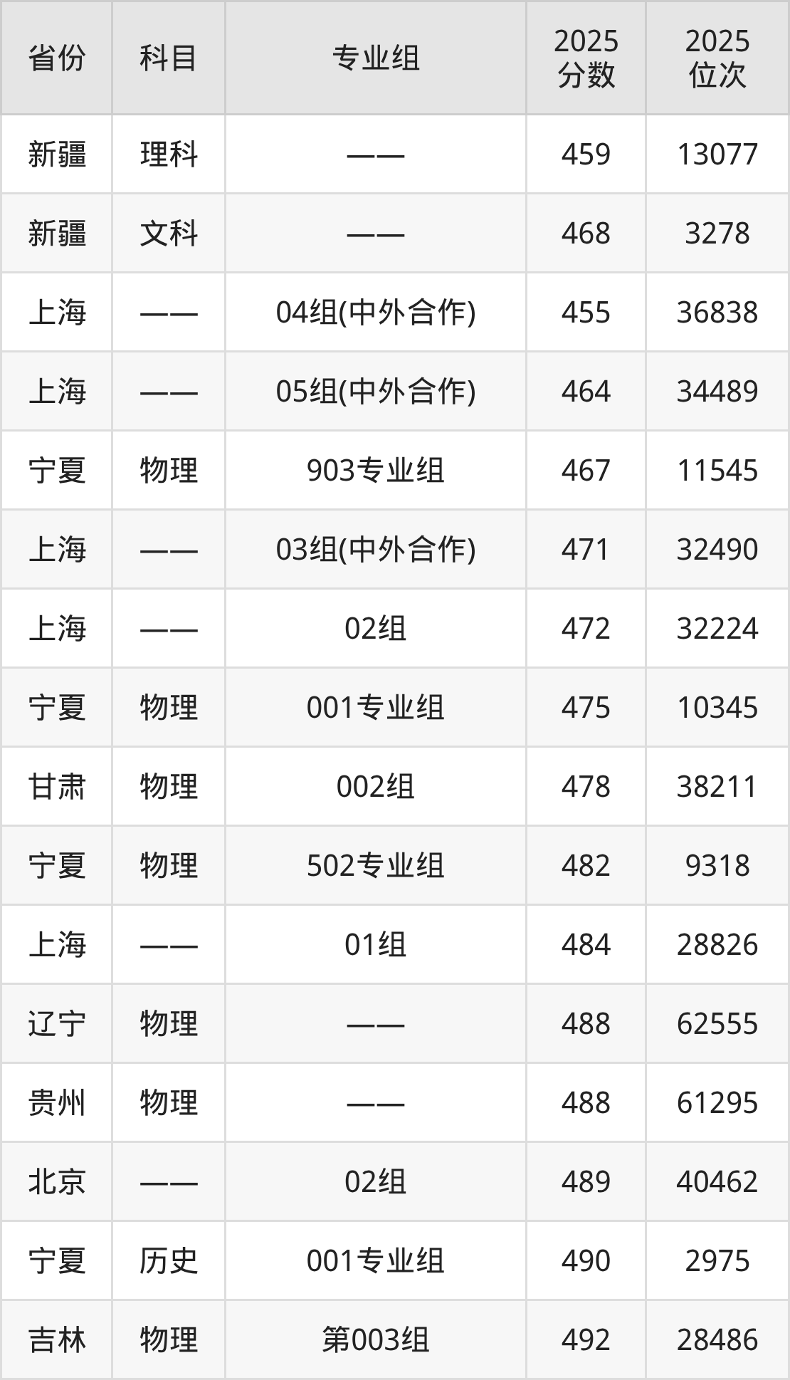 历史类:2025年苏州科技大学录取最低分是490分(宁夏),对应的位次排名是2975名。