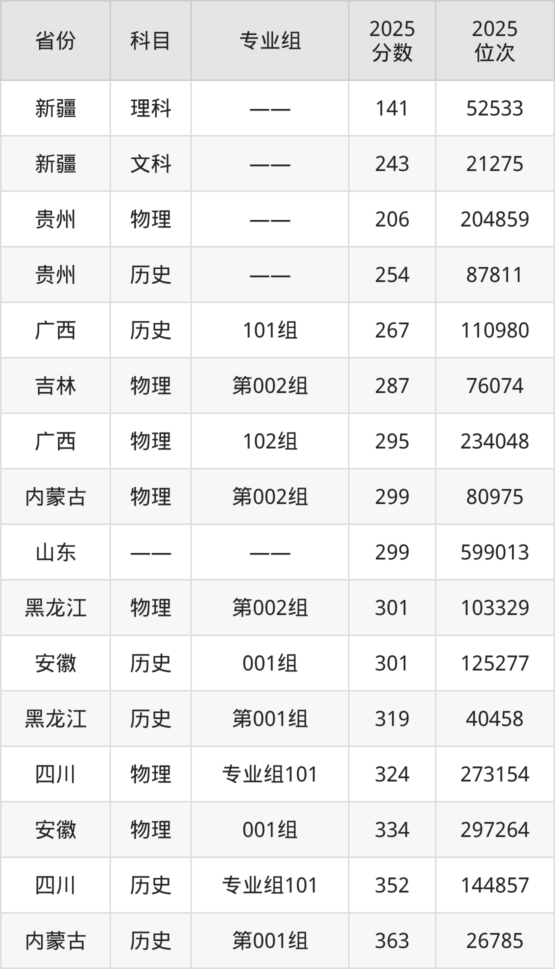 理科:2025年黑龙江民族职业学院录取最低分是141分(新疆),对应的位次排名是52533名。