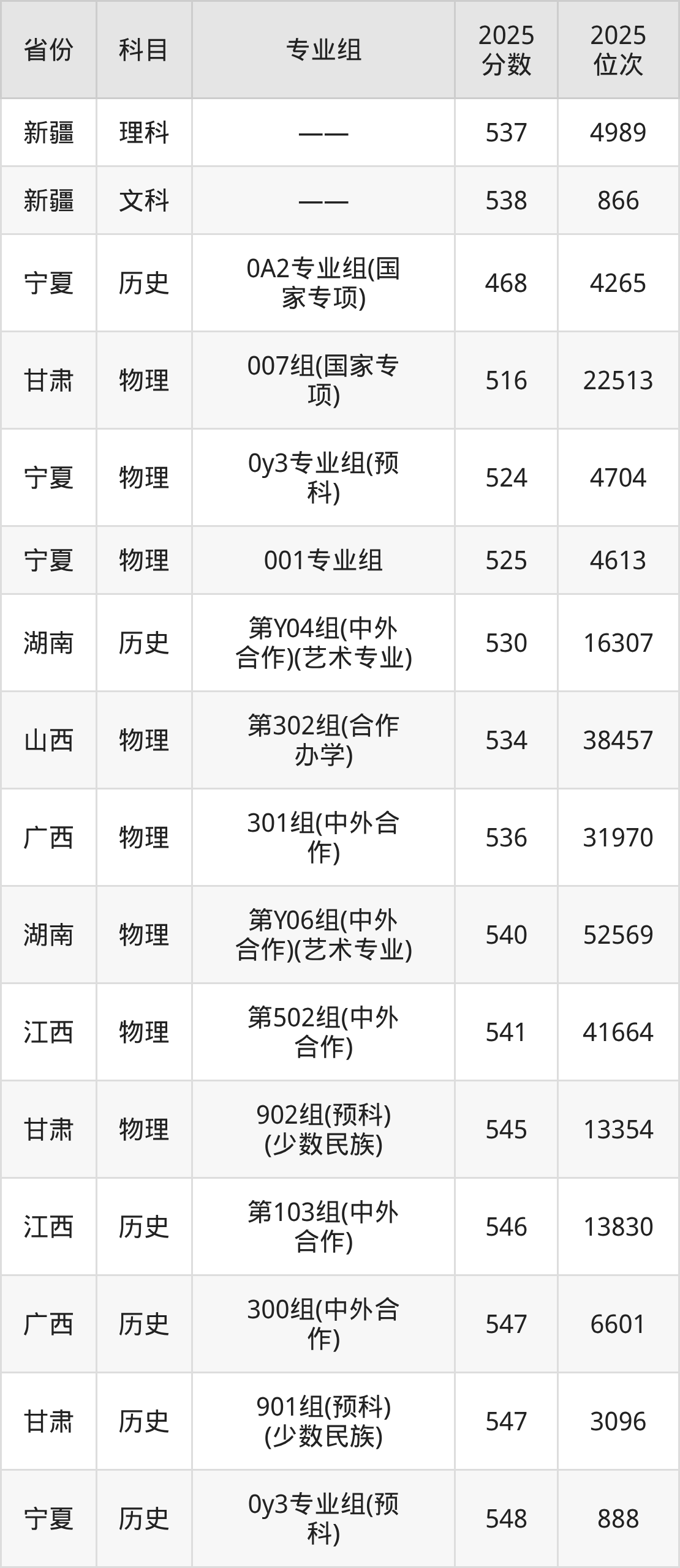 文科:2025年中南财经政法大学录取最低分是538分(新疆),对应的位次排名是866名。