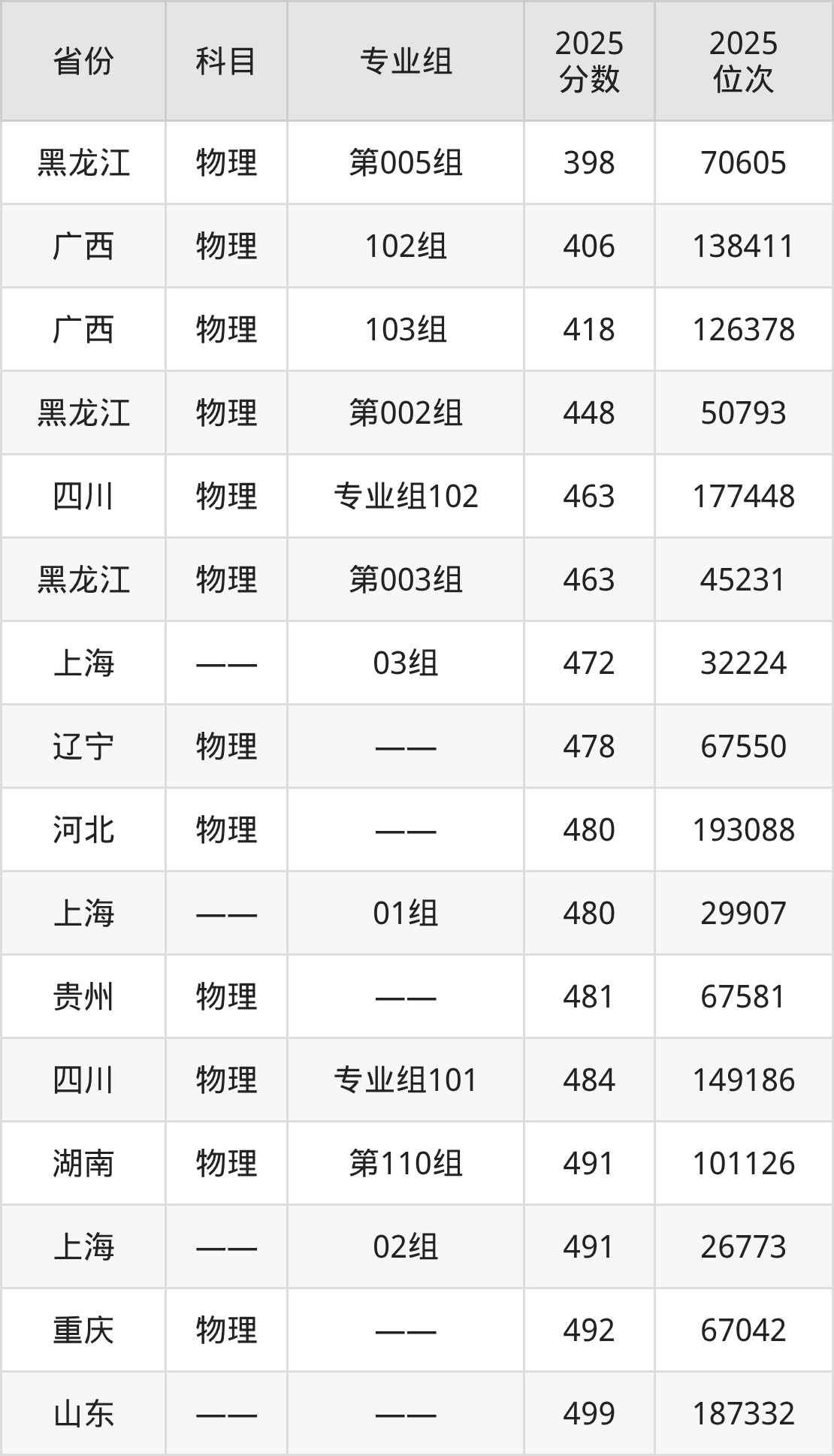 物理类:2025年安徽师范大学录取最低分是398分(黑龙江),对应的位次排名是70605名。