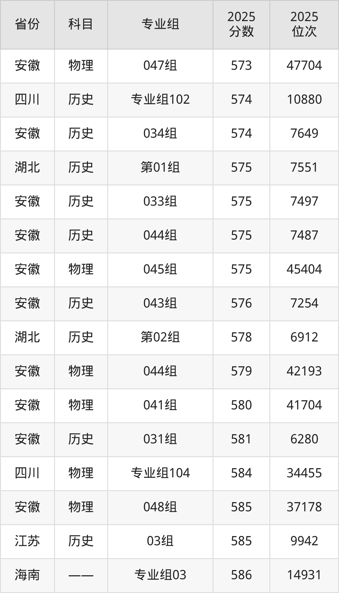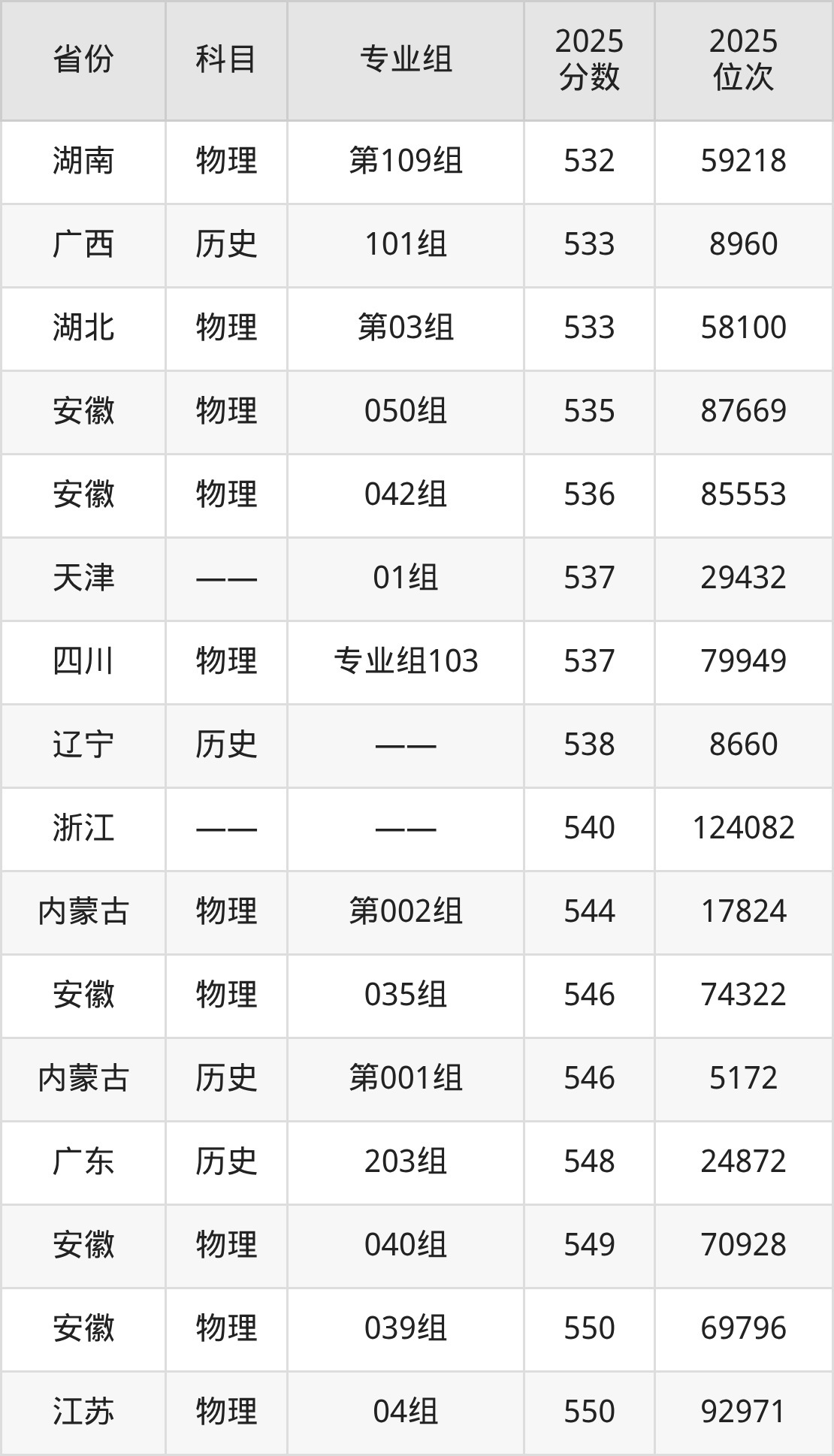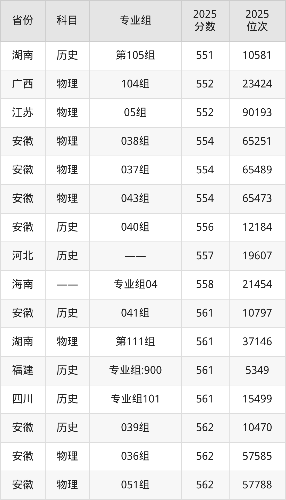 物理类:2025年安徽师范大学省内录取最低分是535分,对应的位次排名是87669名。建议:如果2026年排名超过87669名,那么被该校录取的概率较大。