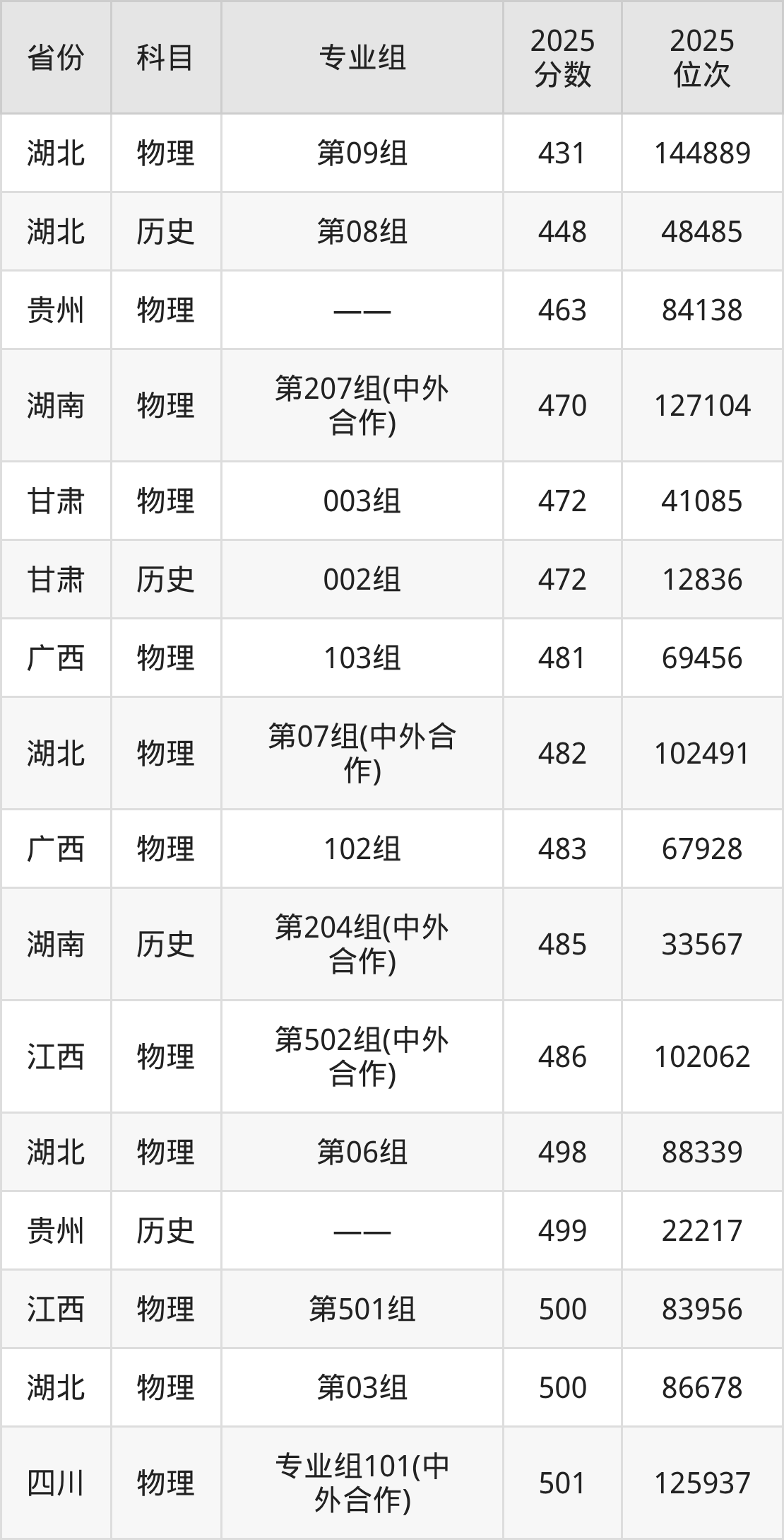 物理类:2025年武汉商学院录取最低分是463分(贵州),对应的位次排名是84138名。