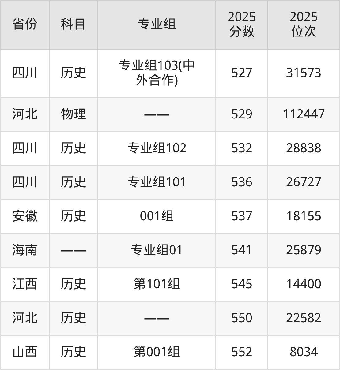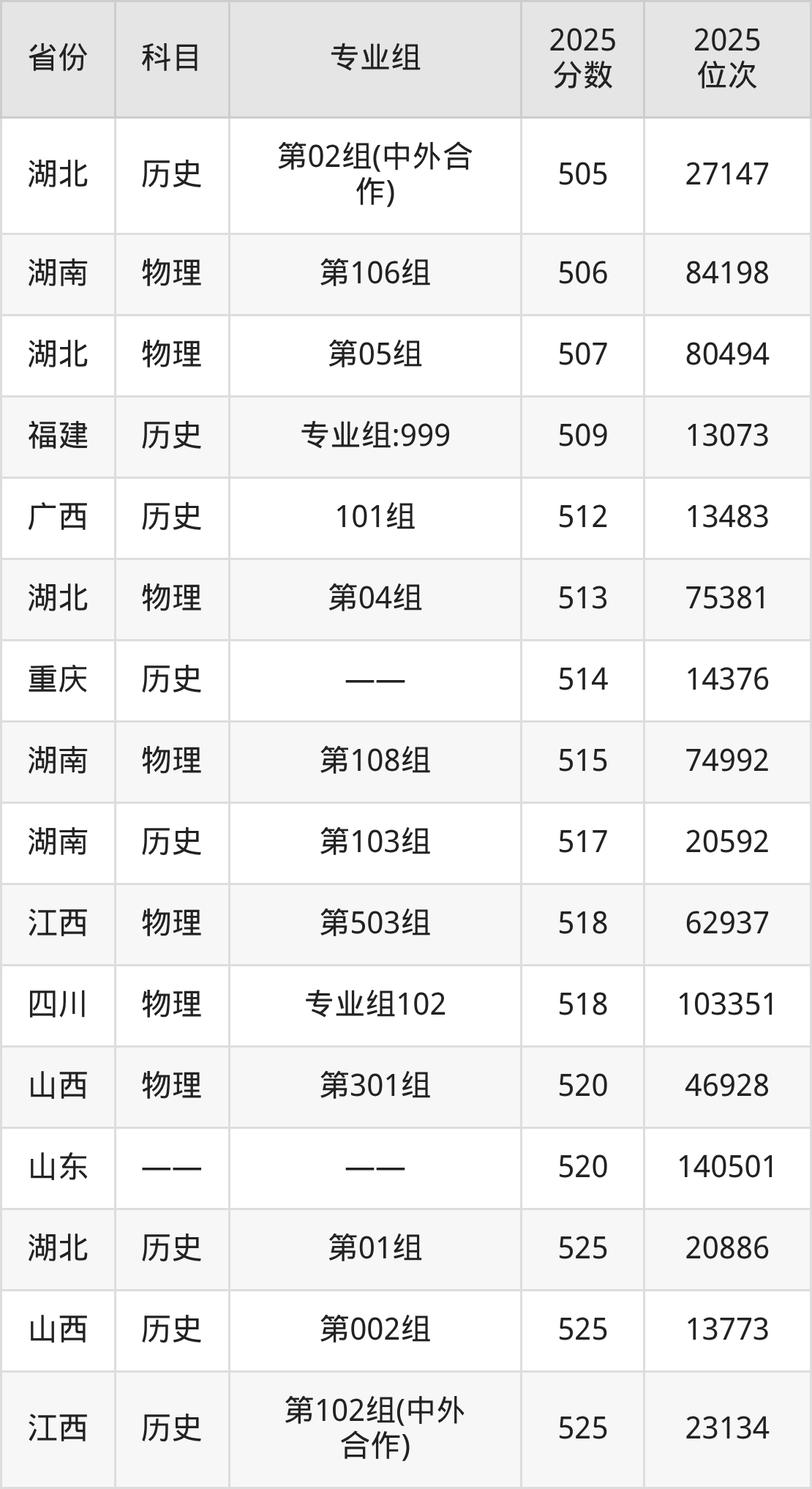3+3地区:2025年武汉商学院录取最低分是520分(山东),对应的位次排名是140501名。