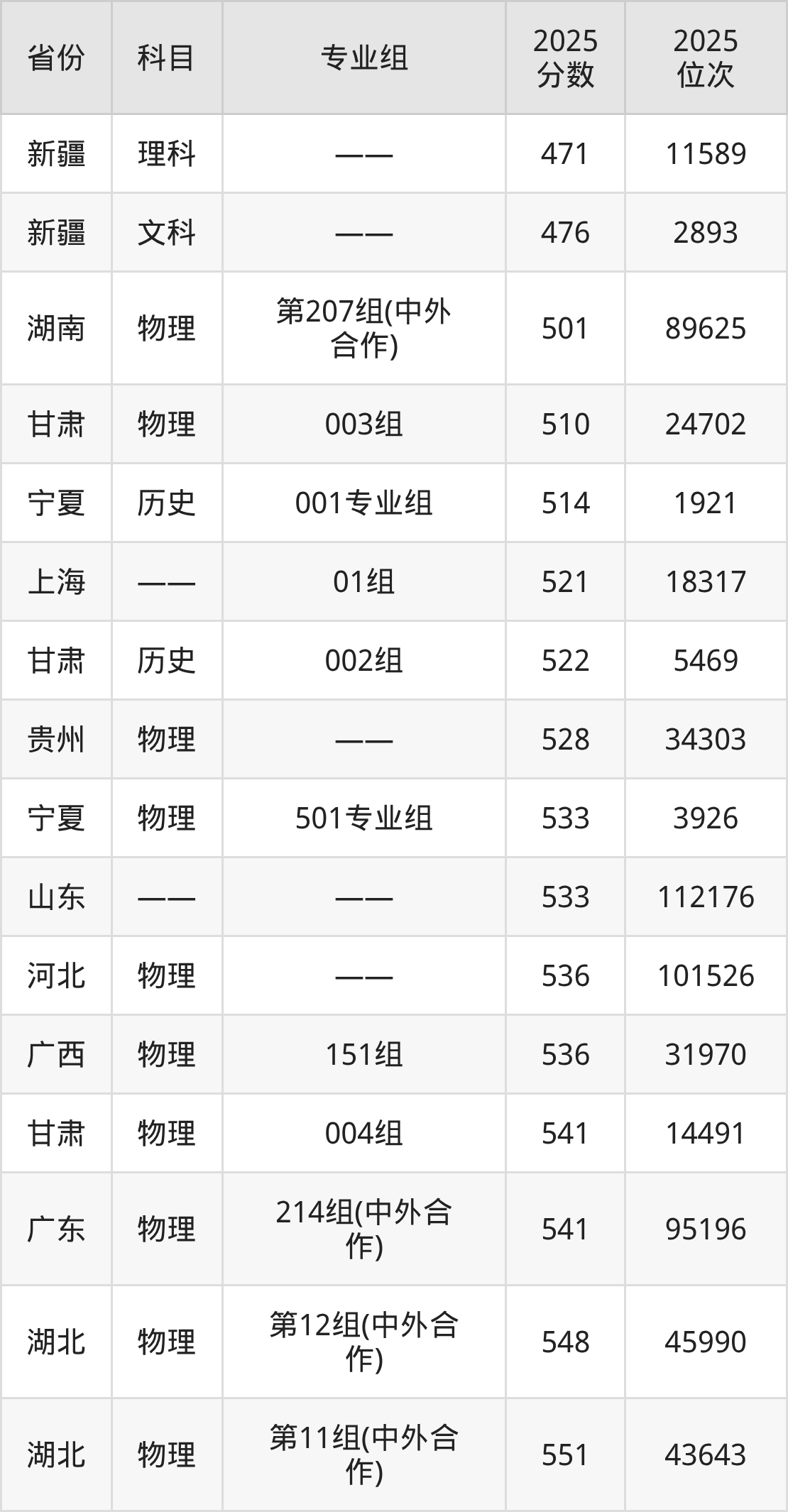 物理类:2025年武汉科技大学录取最低分是501分(湖南),对应的位次排名是89625名。