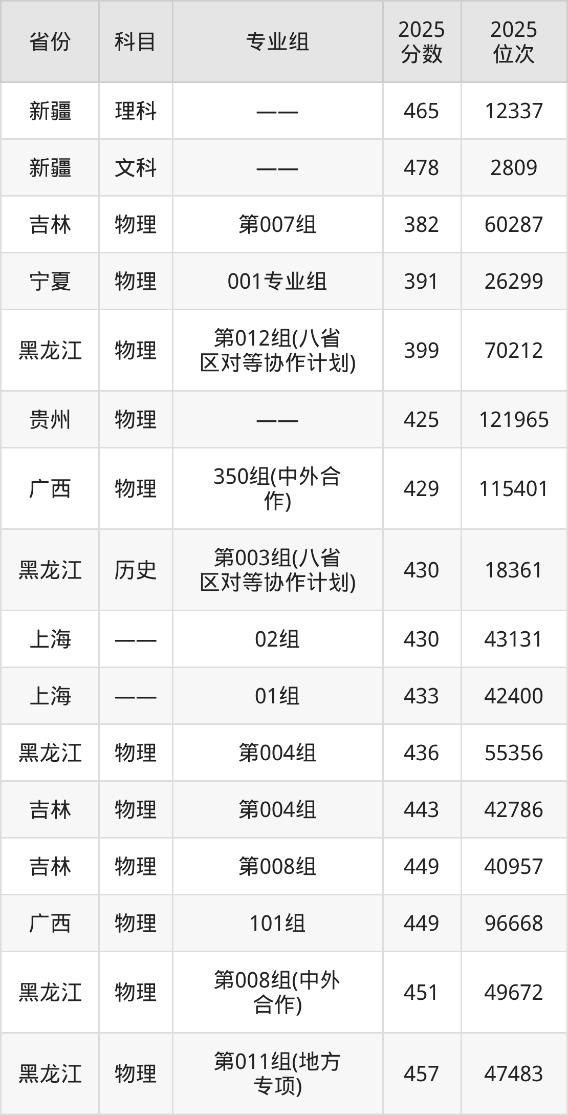 物理类:2025年东北石油大学录取最低分是382分(吉林),对应的位次排名是60287名。