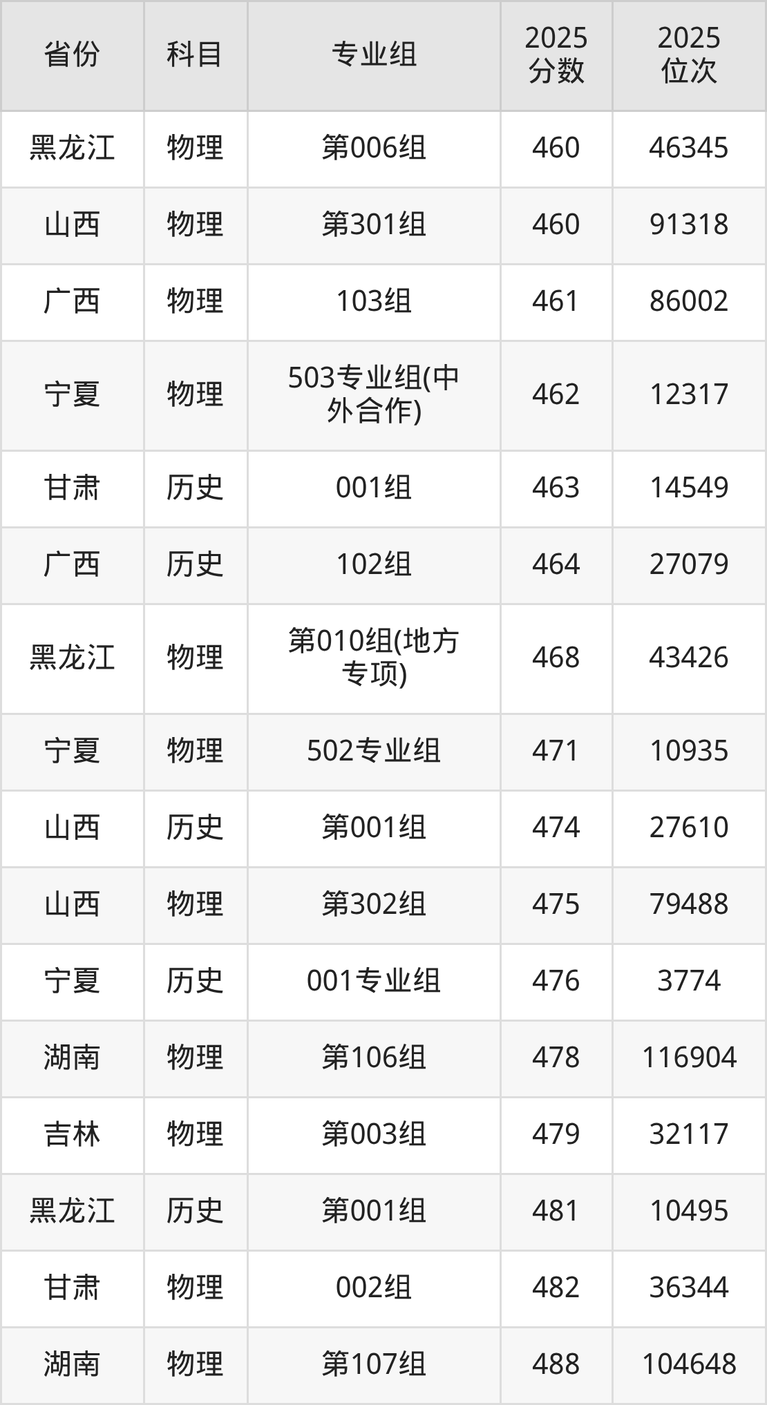 历史类:2025年东北石油大学录取最低分是463分(甘肃),对应的位次排名是14549名。