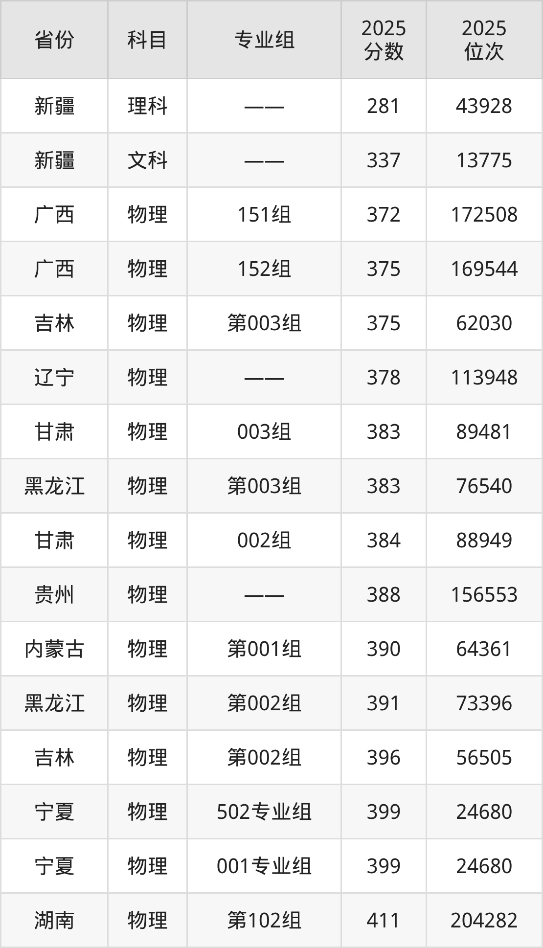 物理类:2025年沈阳科技学院录取最低分是372分(广西),对应的位次排名是172508名。