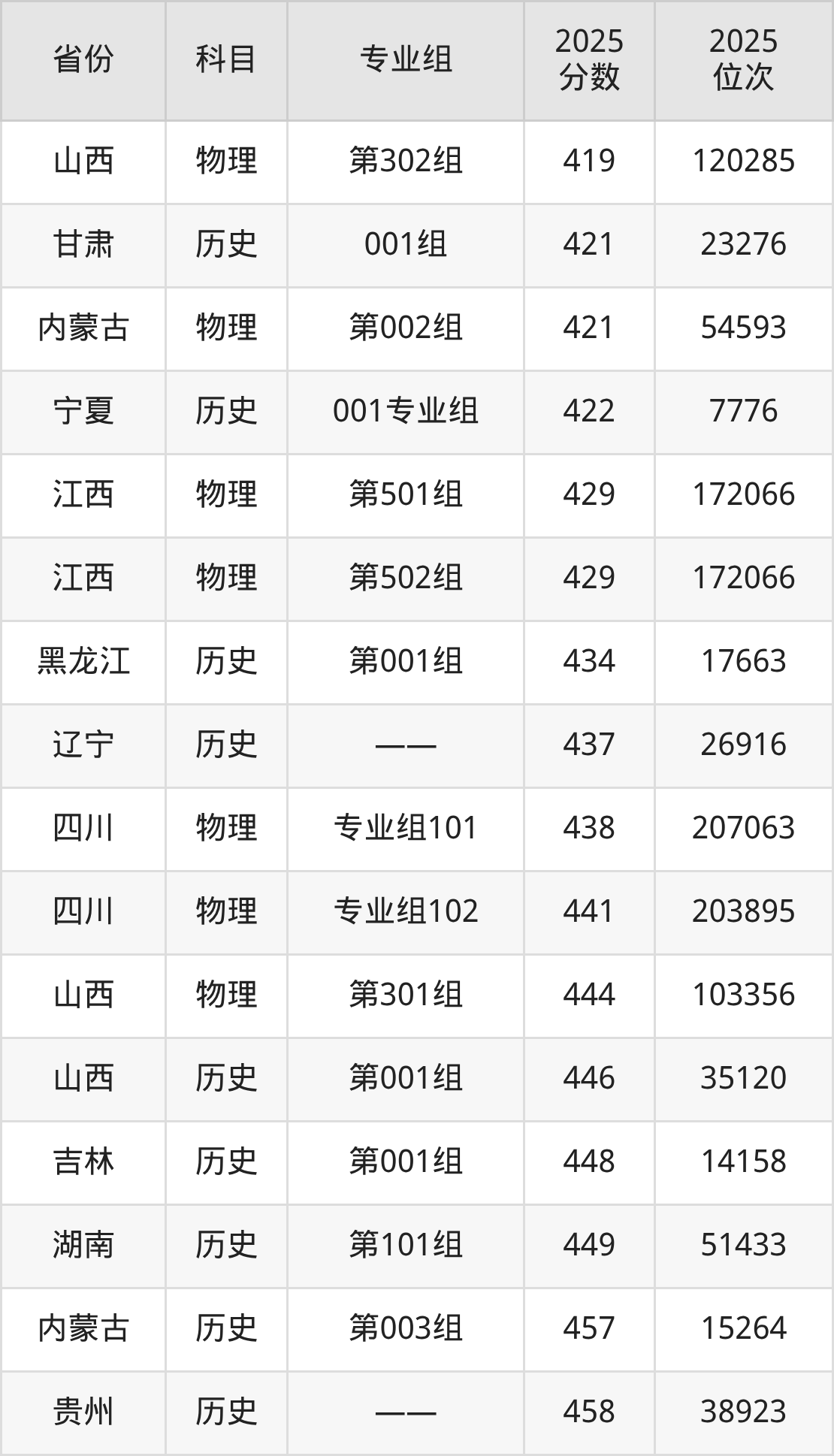 历史类:2025年沈阳科技学院录取最低分是421分(甘肃),对应的位次排名是23276名。