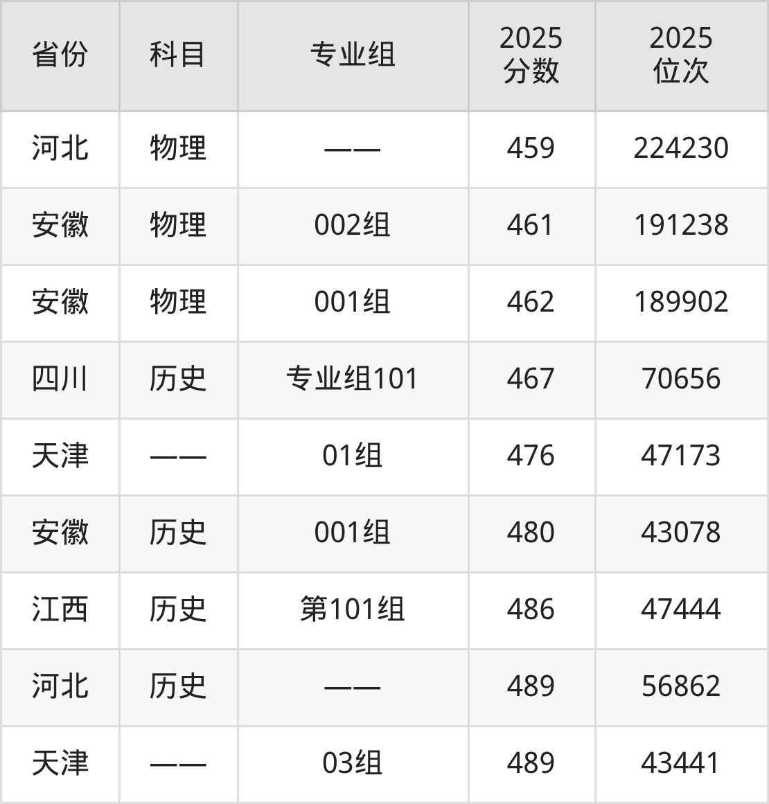 3+3地区:2025年沈阳科技学院录取最低分是476分(天津),对应的位次排名是47173名。