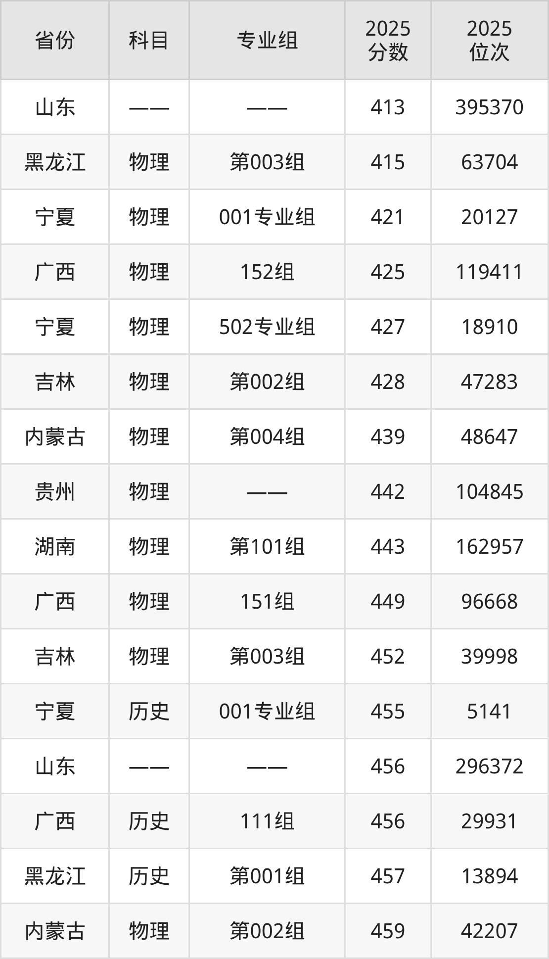 历史类:2025年菏泽学院录取最低分是455分(宁夏),对应的位次排名是5141名。