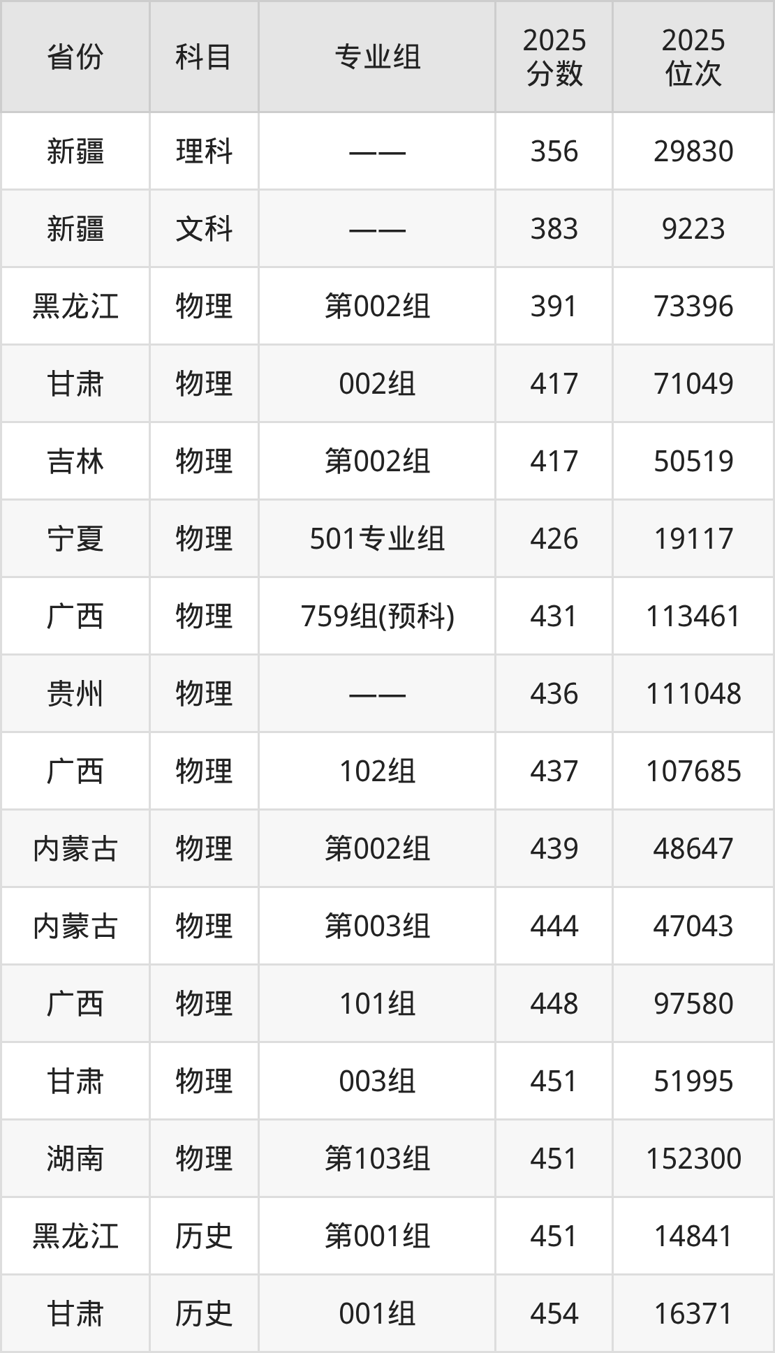 文科:2025年武夷学院录取最低分是383分(新疆),对应的位次排名是9223名。