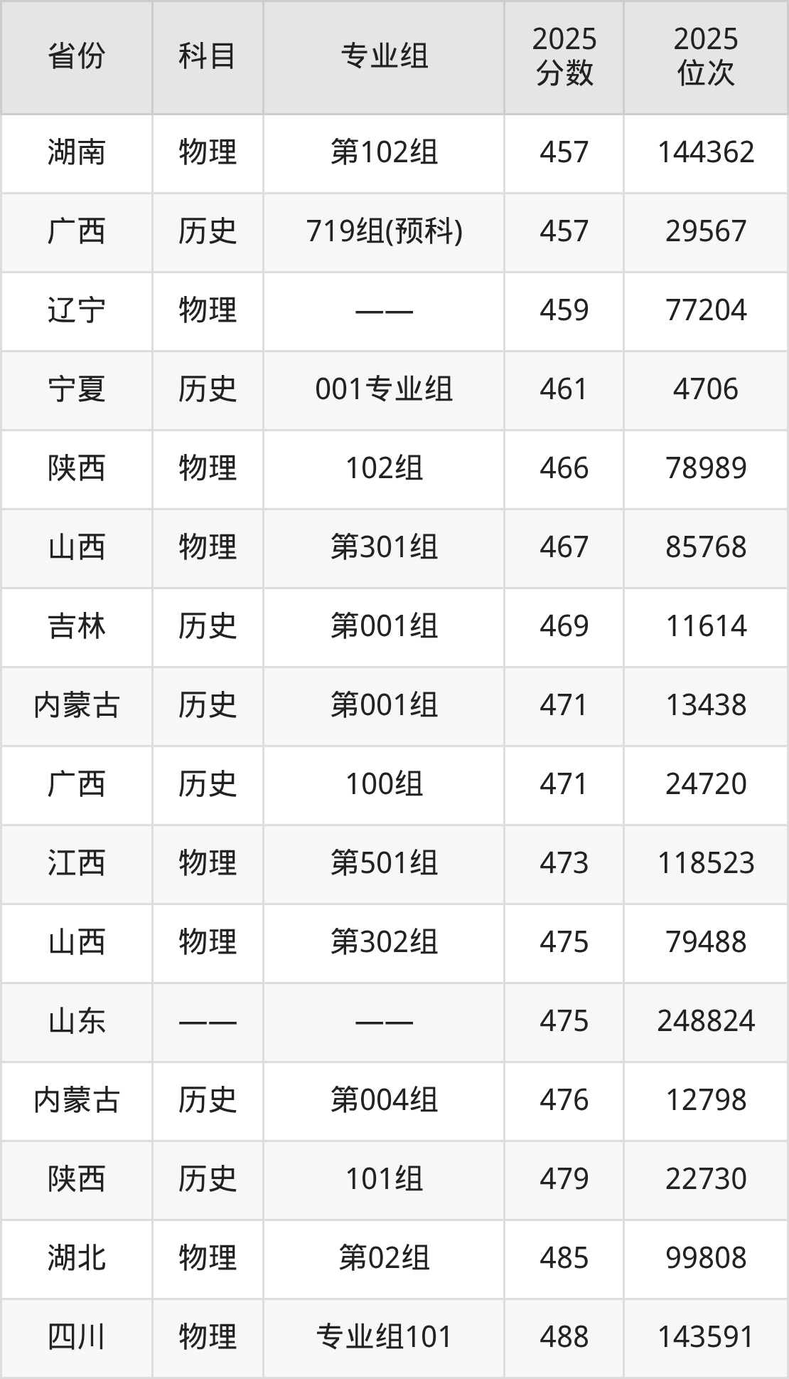 3+3地区:2025年武夷学院录取最低分是475分(山东),对应的位次排名是248824名。