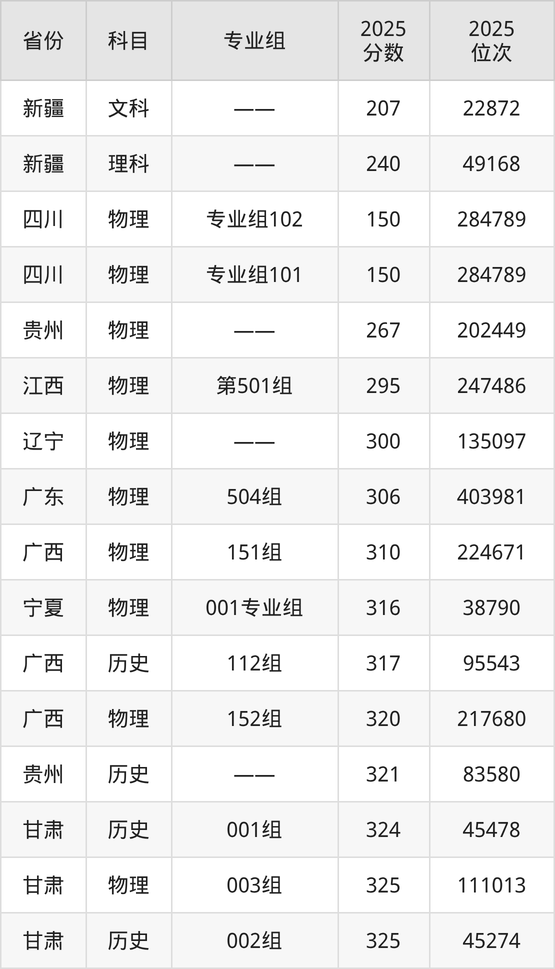 物理类:2025年铁岭卫生职业学院录取最低分是150分(四川),对应的位次排名是284789名。