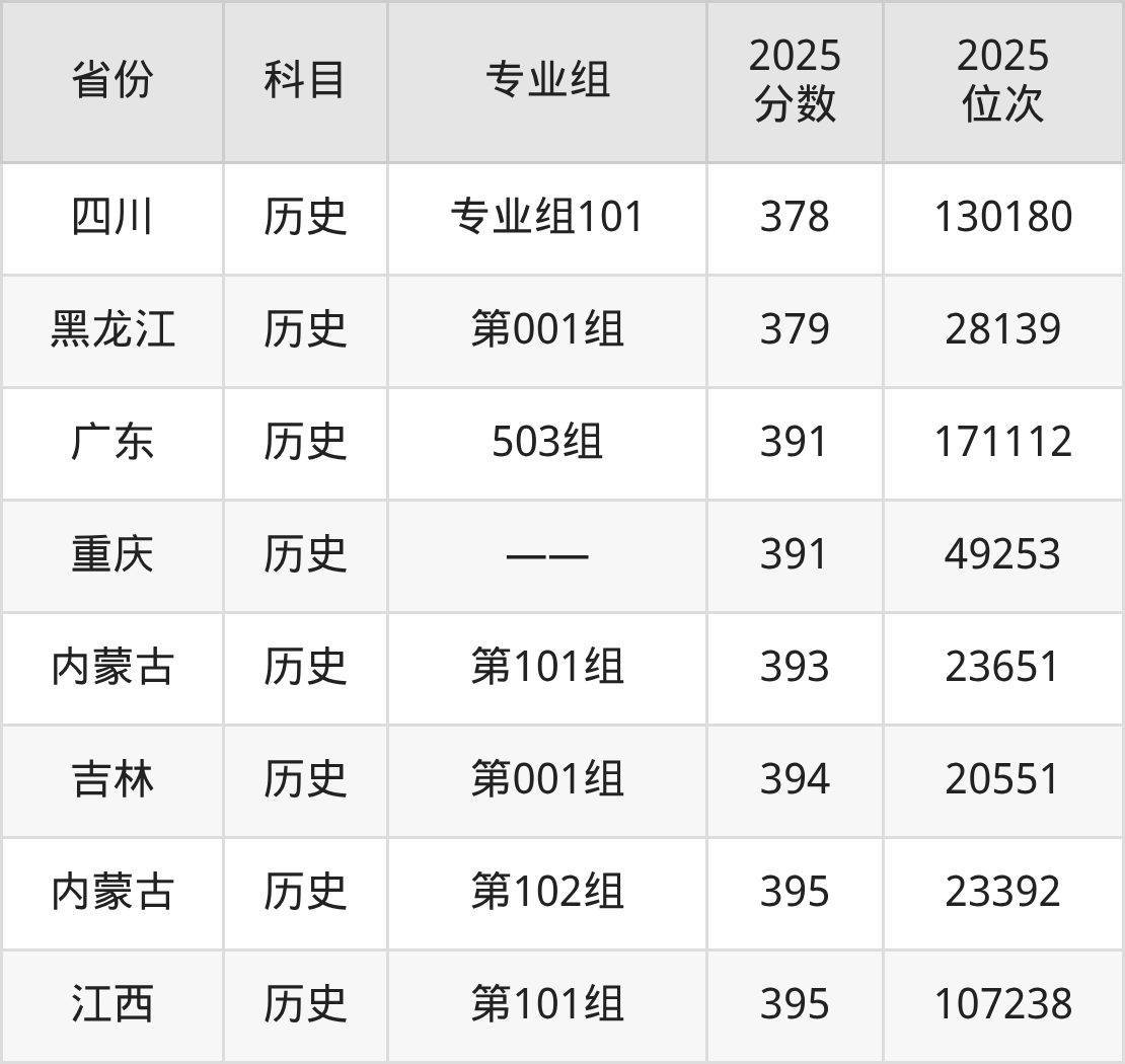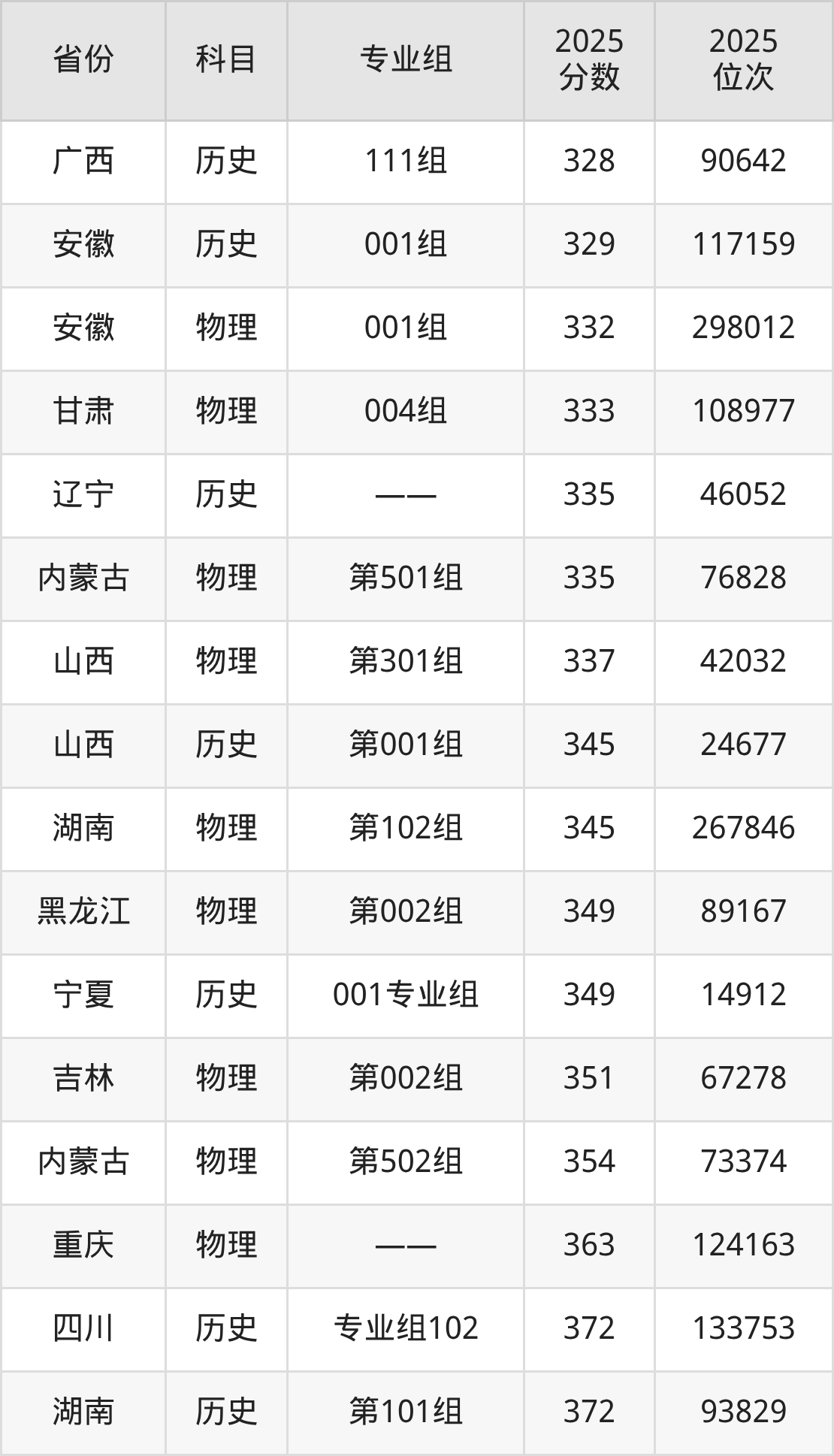 历史类:2025年铁岭卫生职业学院录取最低分是317分(广西),对应的位次排名是95543名。