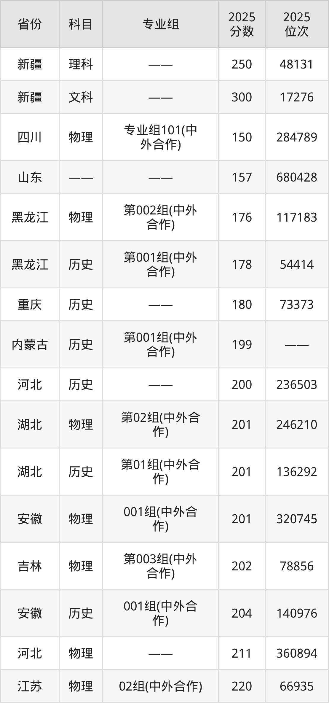 文科:2025年苏州百年职业学院录取最低分是300分(新疆),对应的位次排名是17276名。