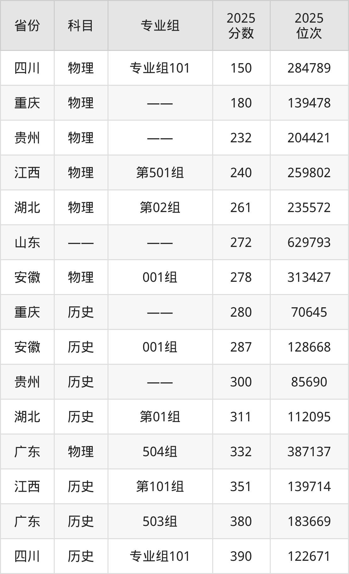 物理类:2025年重庆护理职业学院录取最低分是150分(四川),对应的位次排名是284789名。