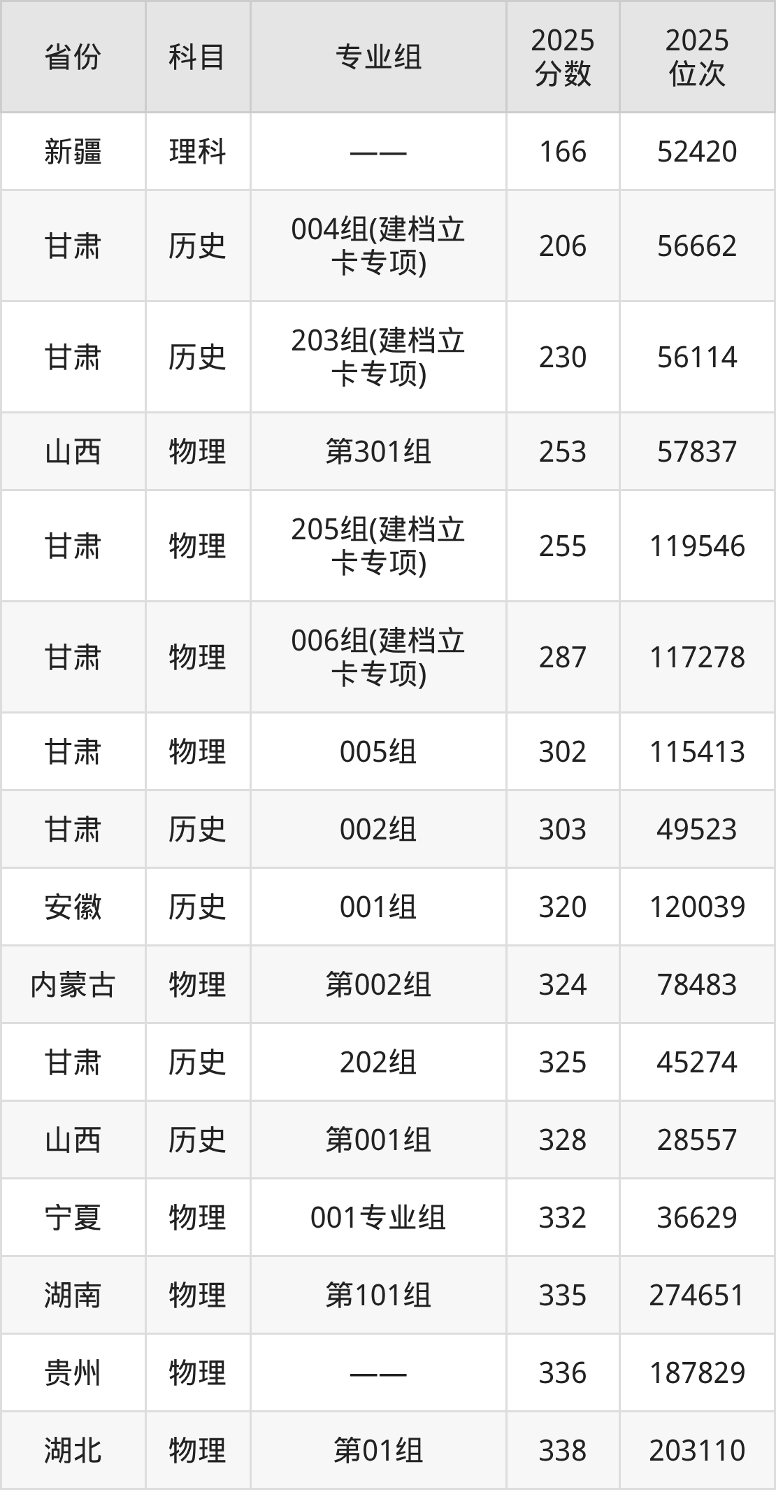 理科:2025年甘肃工业职业技术大学录取最低分是166分(新疆),对应的位次排名是52420名。