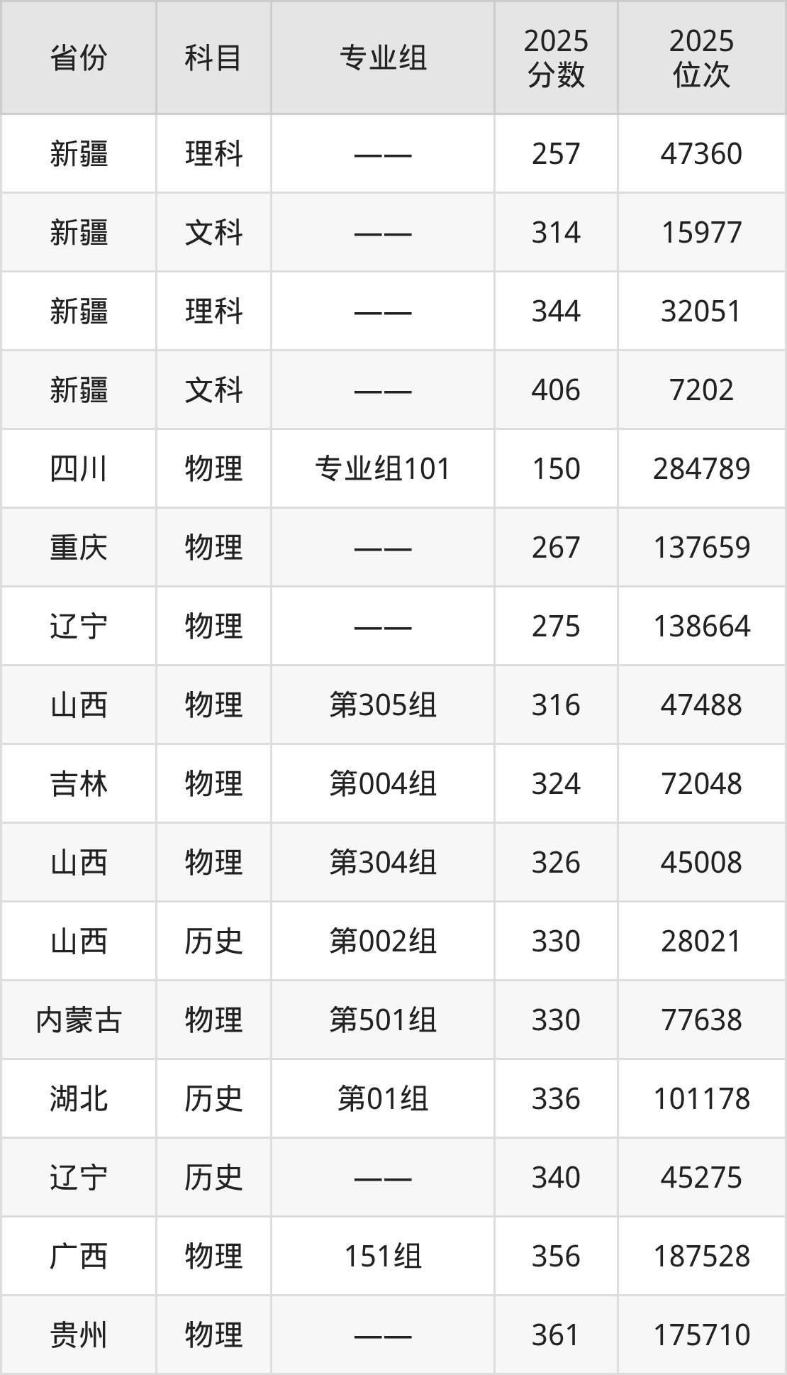 理科:2025年朝阳师范学院录取最低分是257分(新疆),对应的位次排名是47360名。
