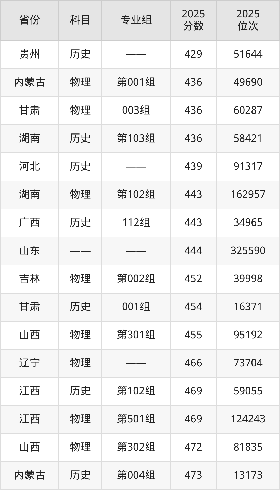 3+3地区:2025年朝阳师范学院录取最低分是444分(山东),对应的位次排名是325590名。