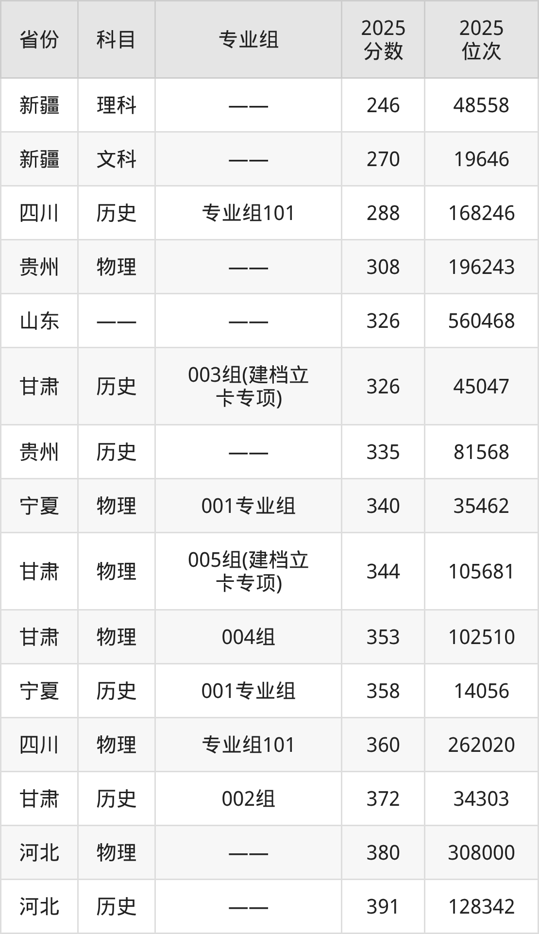 历史类:2025年兰州职业技术学院录取最低分是288分(四川),对应的位次排名是168246名。
