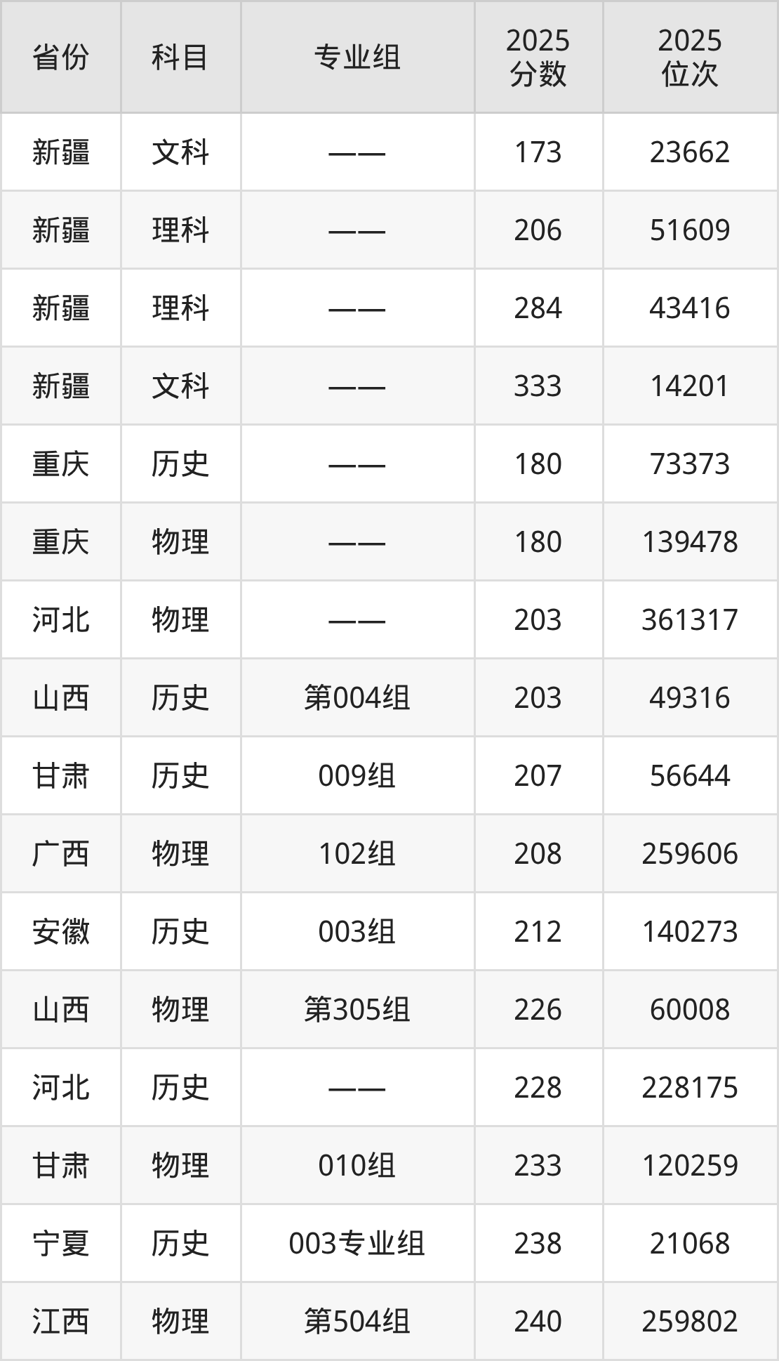 文科:2025年西安思源学院录取最低分是173分(新疆),对应的位次排名是23662名。