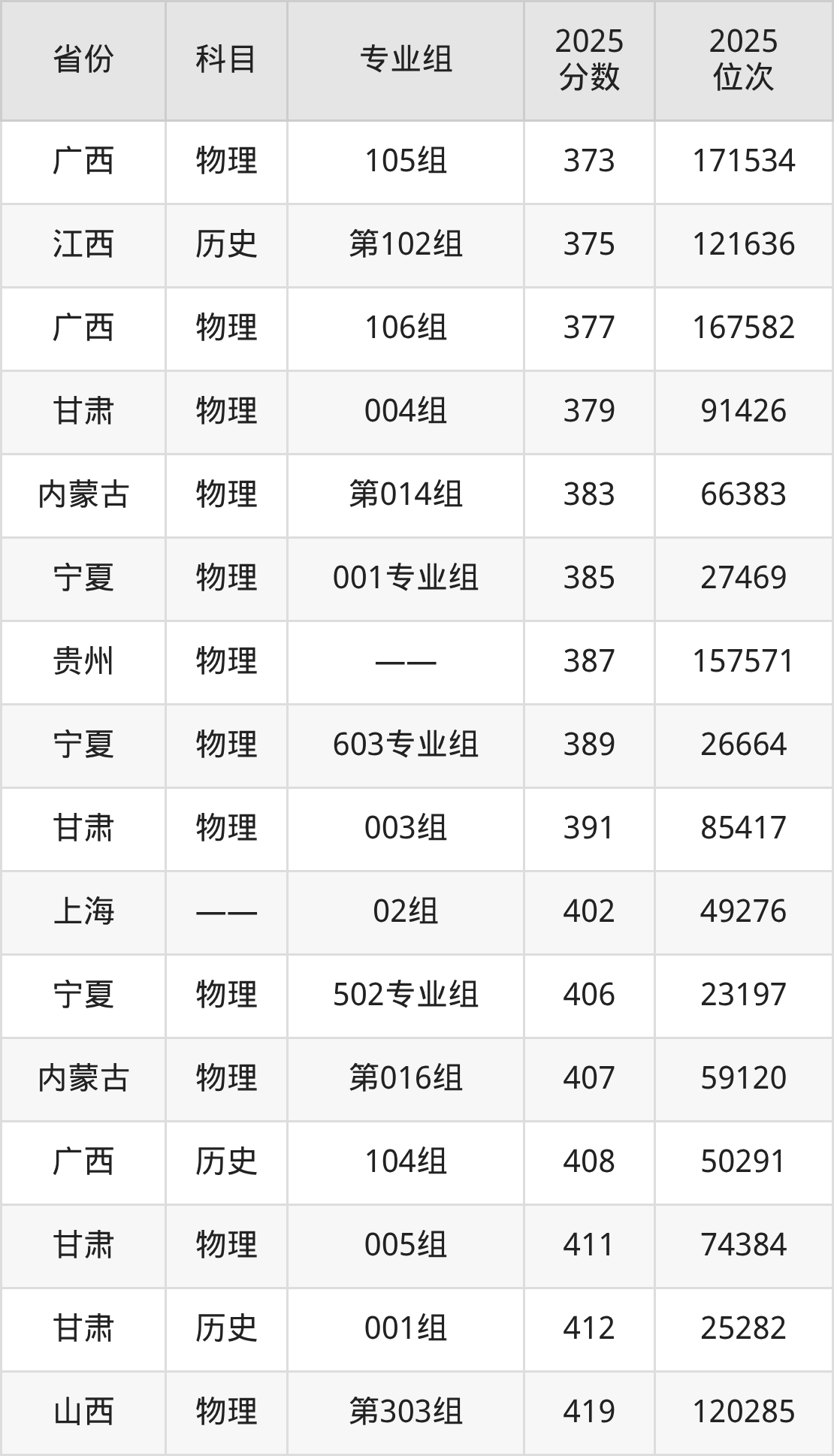 物理类:2025年西安思源学院录取最低分是180分(重庆),对应的位次排名是139478名。