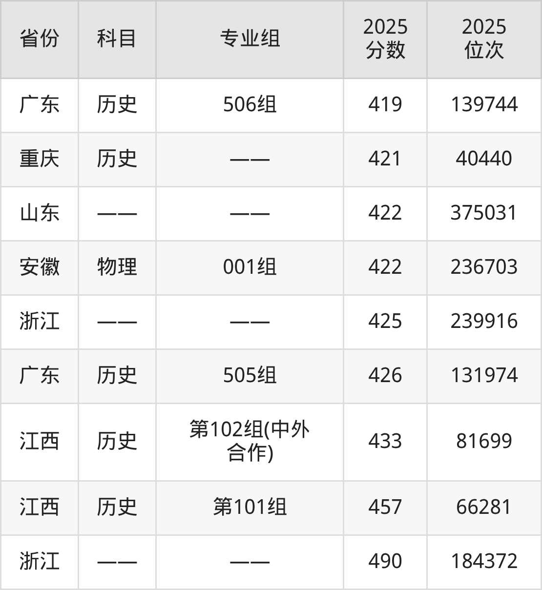 3+3地区:2025年江西交通职业技术学院录取最低分是422分(山东),对应的位次排名是375031名。