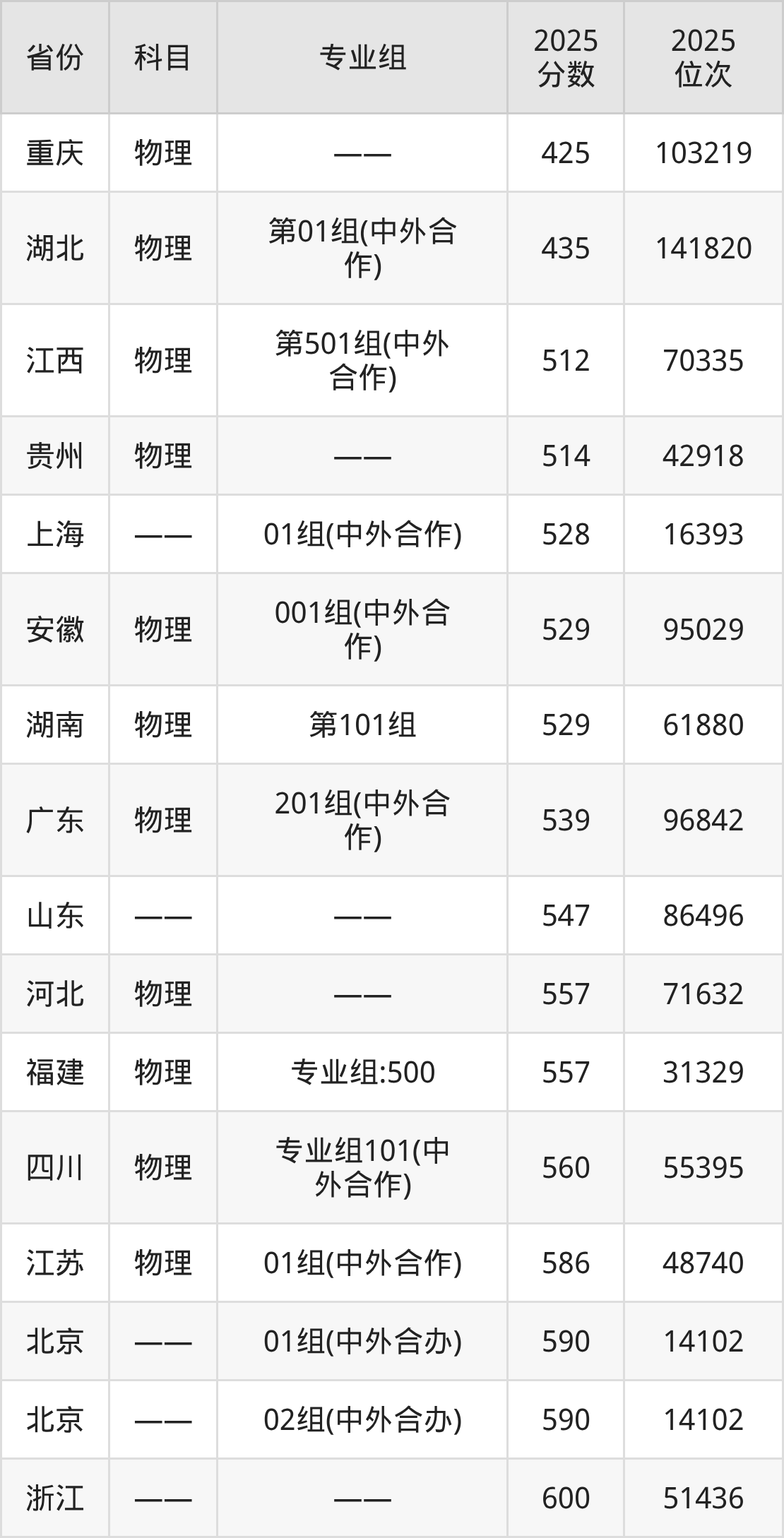 物理类:2025年广东以色列理工学院录取最低分是425分(重庆),对应的位次排名是103219名。