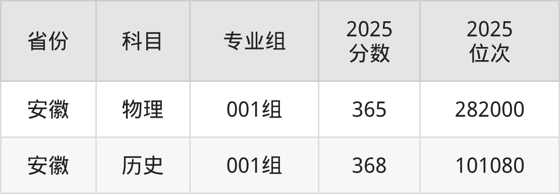 物理类:2025年安徽艺术职业学院省内录取最低分是365分,对应的位次排名是282000名。建议:如果2026年排名超过282000名,那么被该校录取的概率较大。