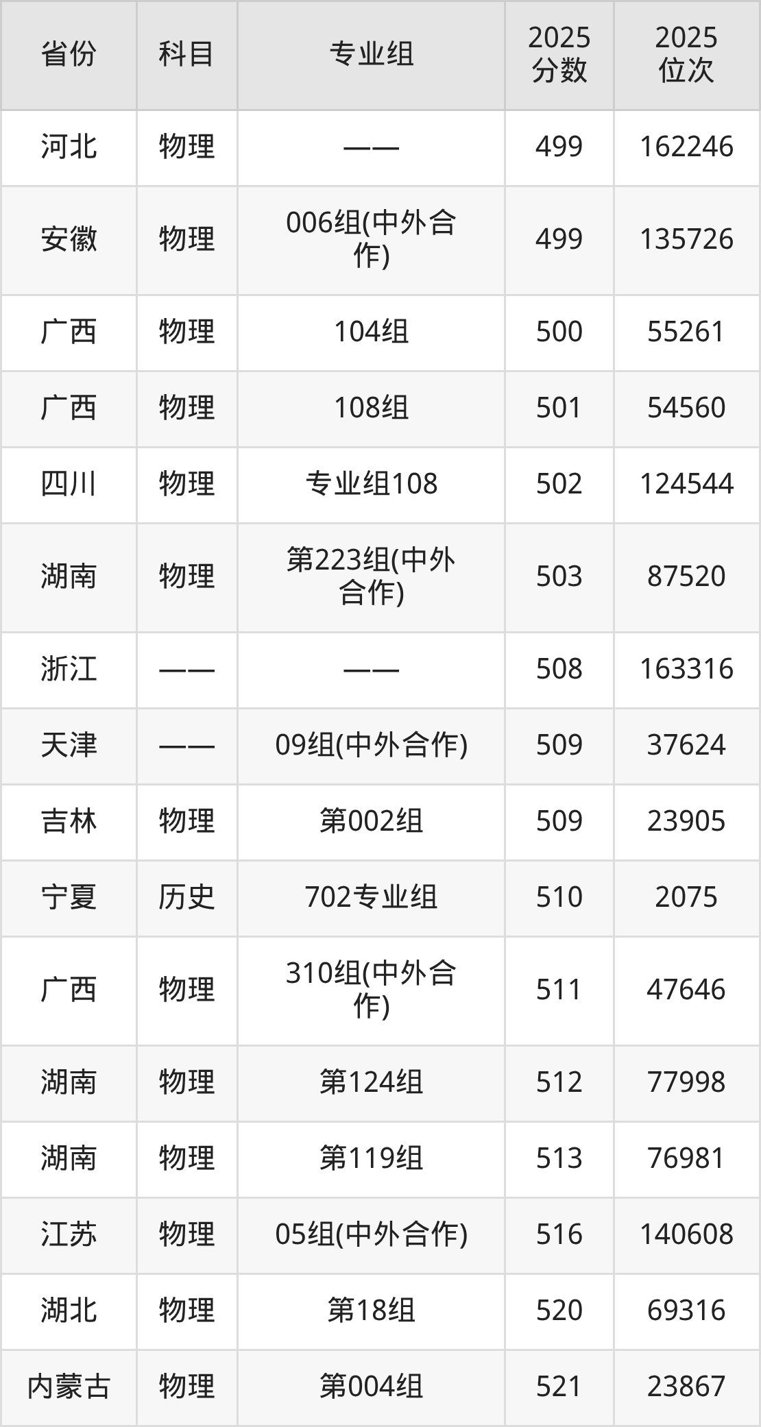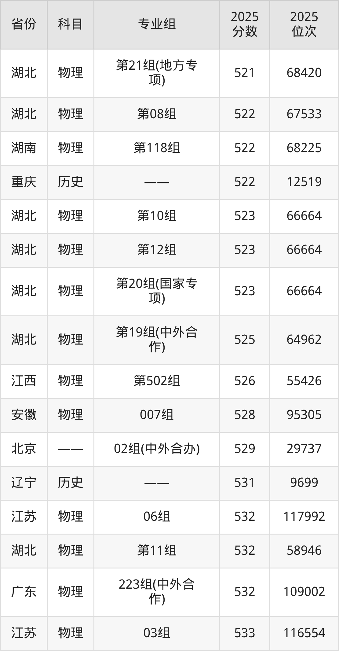 2025年长江大学全国排名第125位,2025年录取分数线最低361分(位次84950)。本文将展示长江大学在各省最低录取分数线汇总,供2026届想要报考该校的考生查阅。