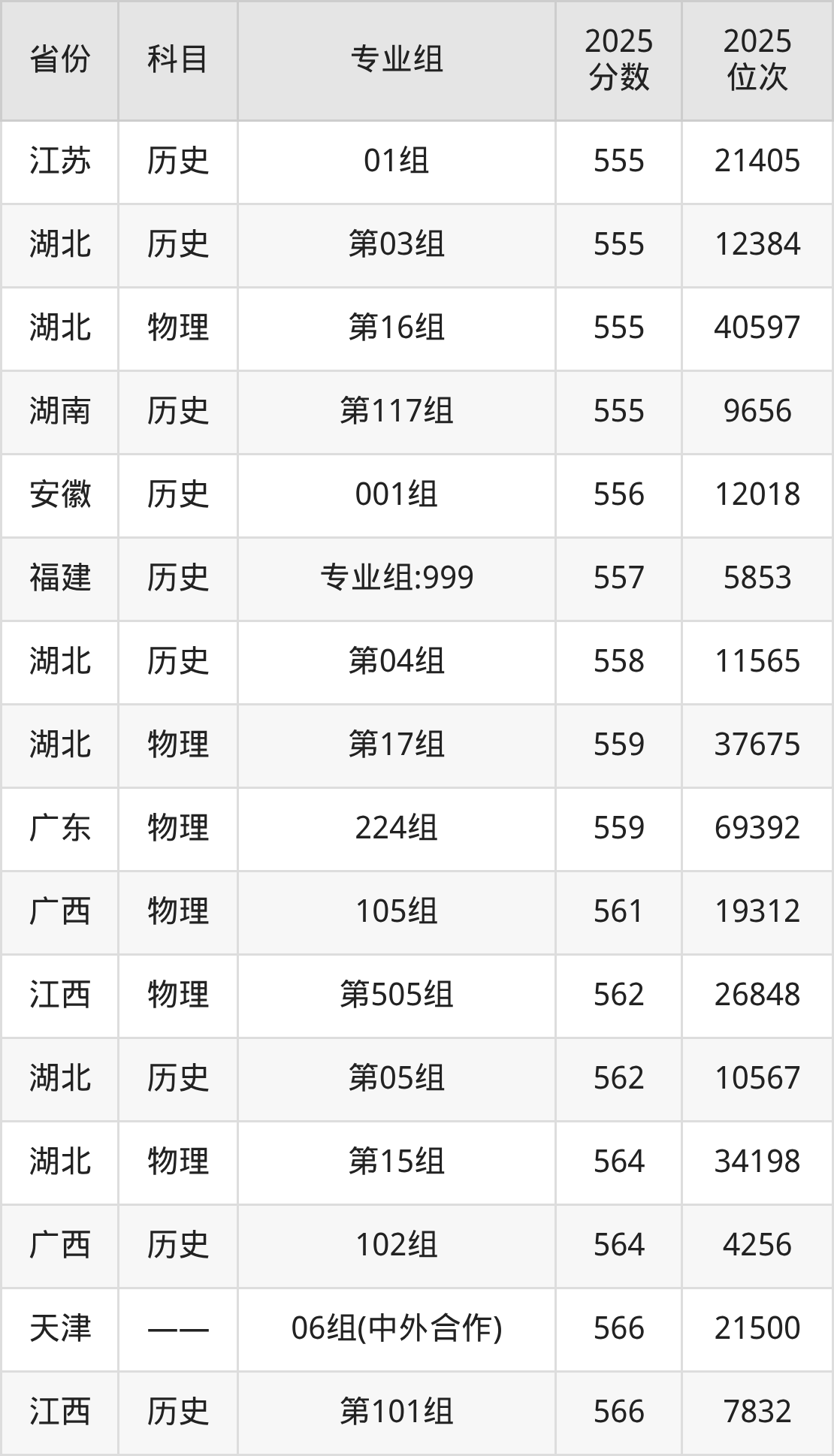 二、长江大学录取分数线