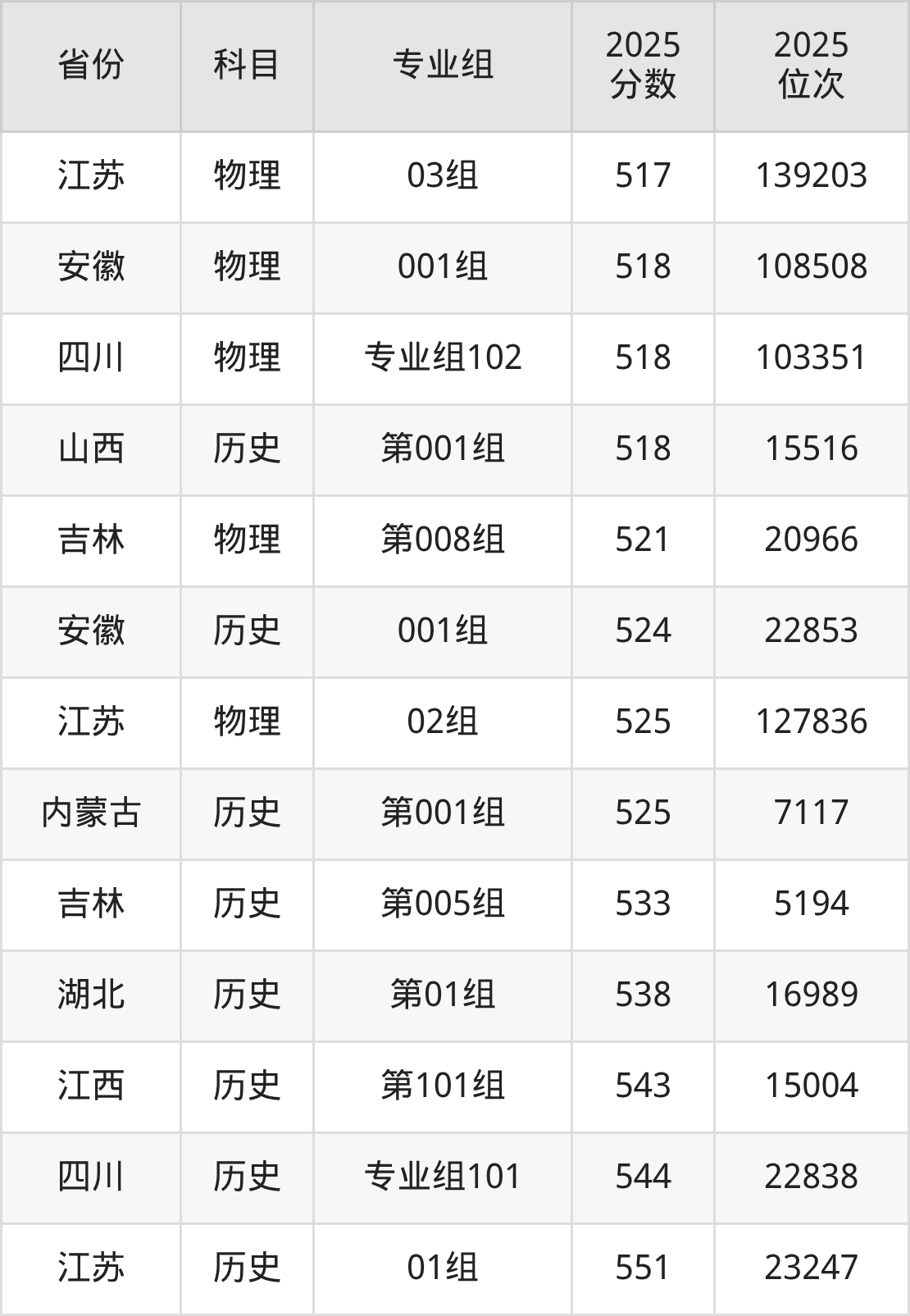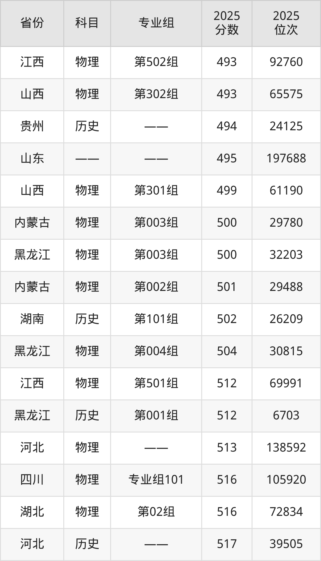 3+3地区:2025年吉林警察学院录取最低分是495分(山东),对应的位次排名是197688名。