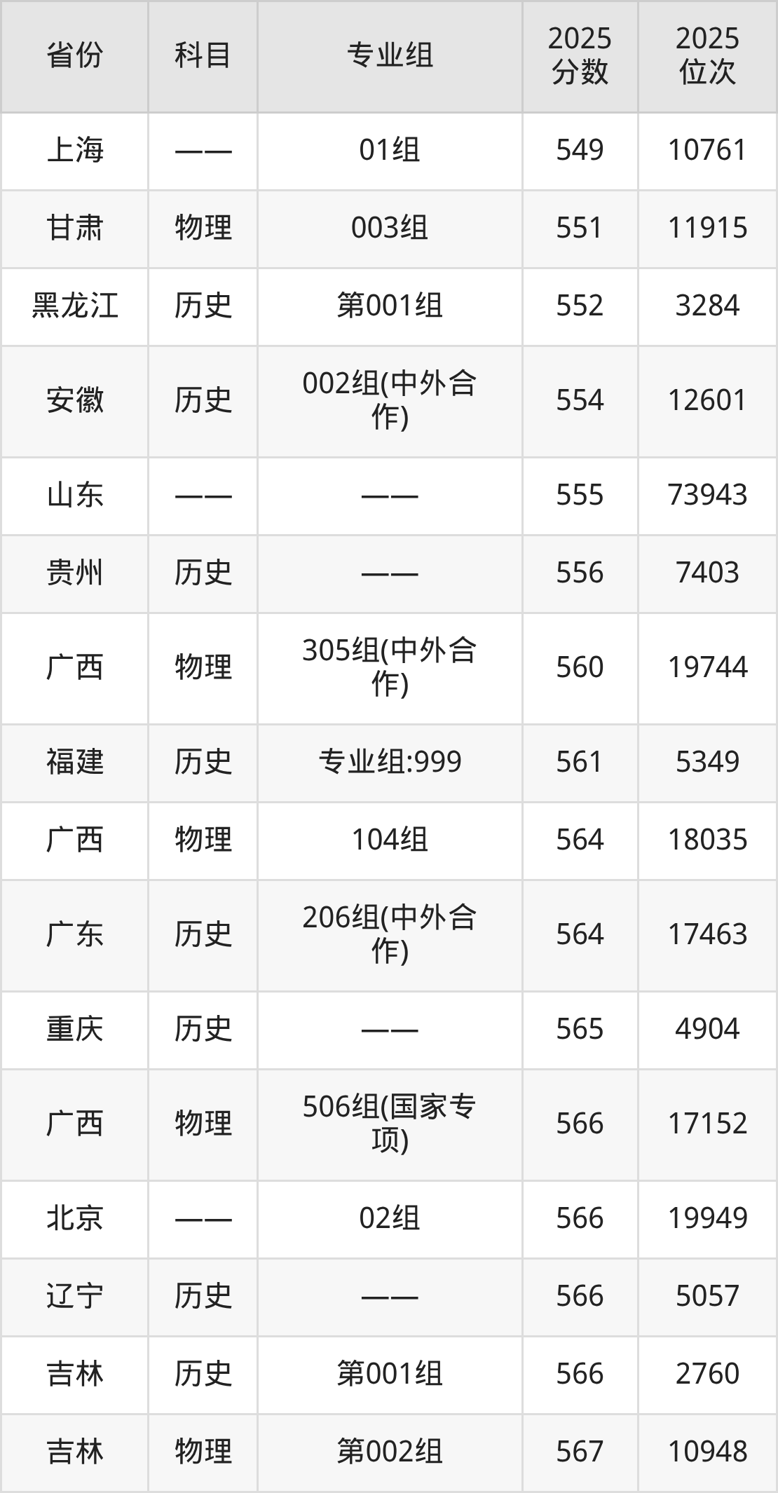 3+3地区:2025年上海理工大学录取最低分是555分(山东),对应的位次排名是73943名。