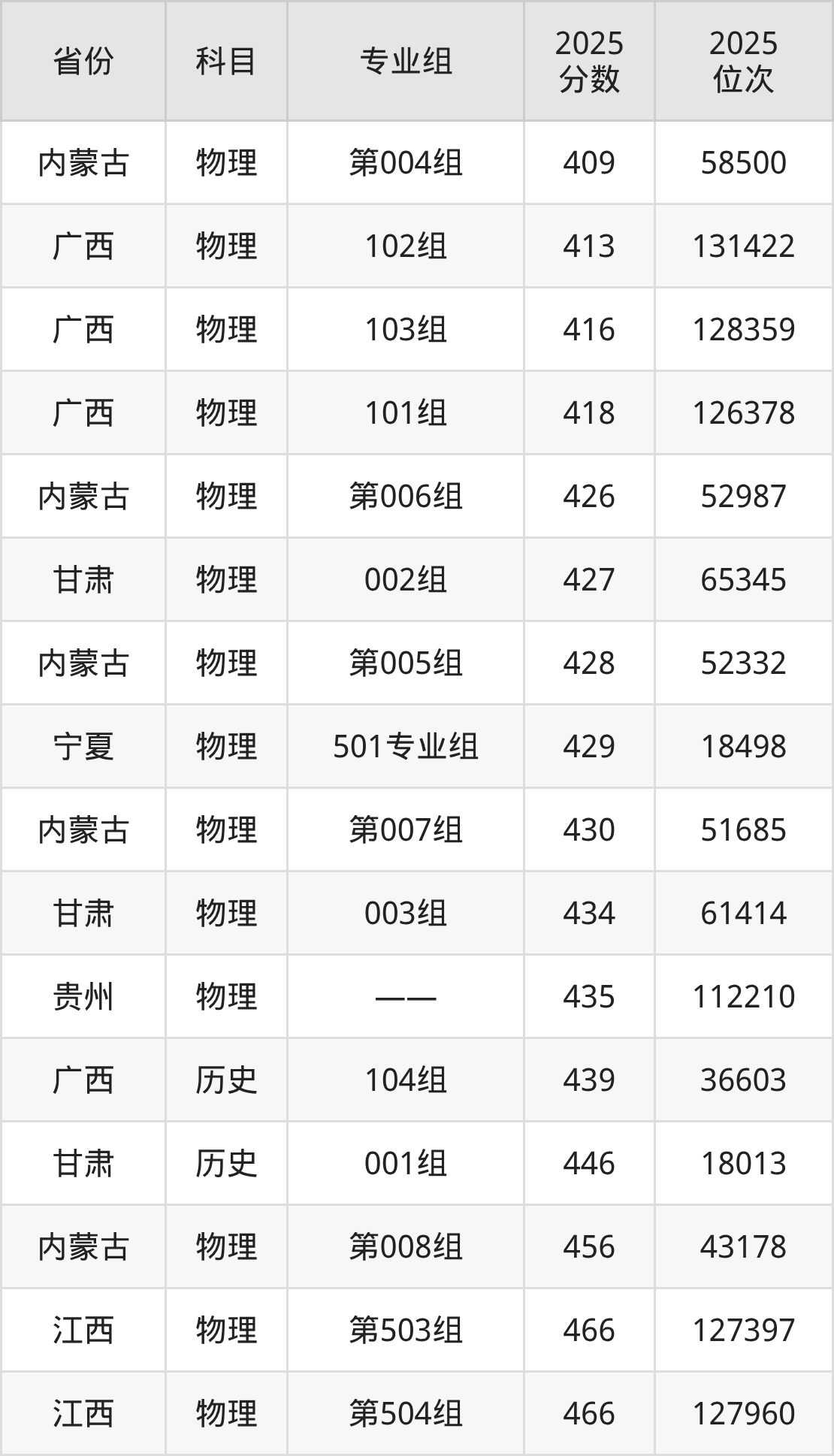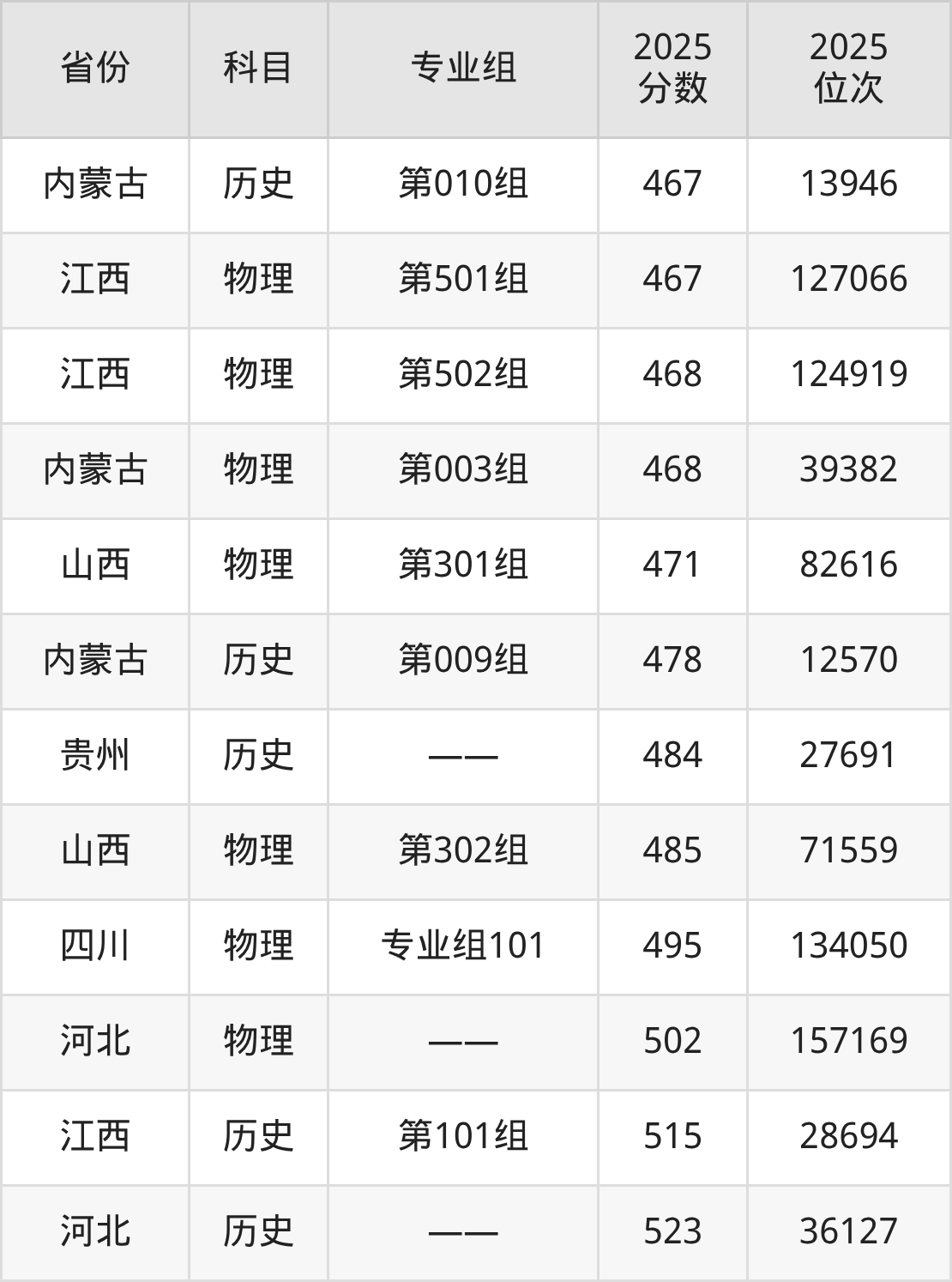 物理类:2025年鄂尔多斯应用技术学院录取最低分是413分(广西),对应的位次排名是131422名。
