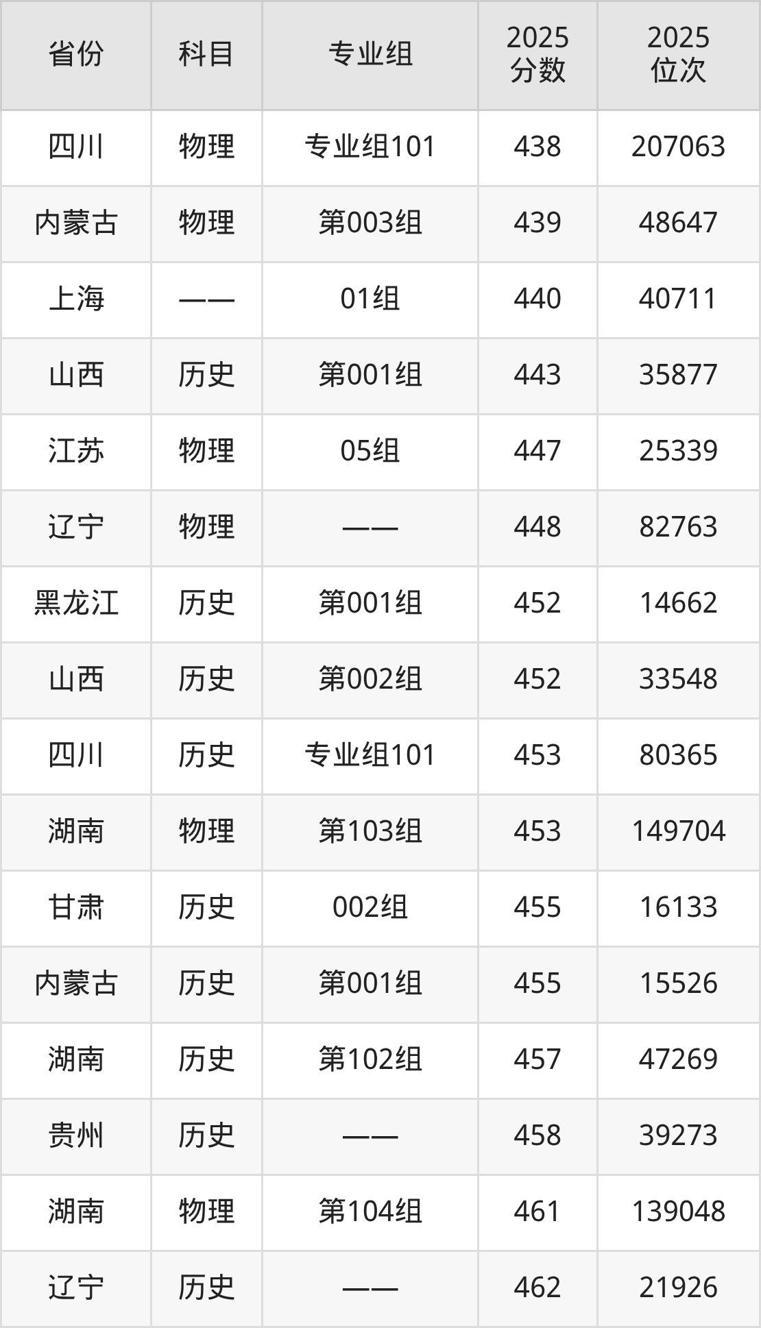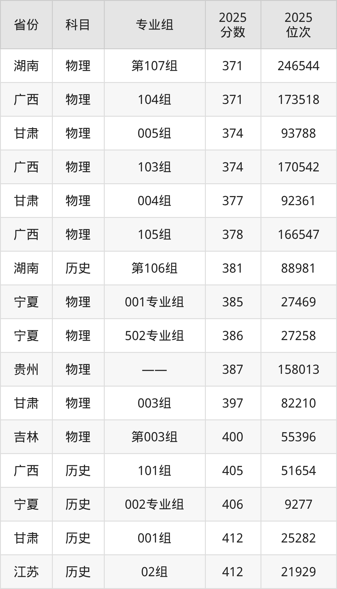 物理类:2025年上海杉达学院录取最低分是371分(湖南),对应的位次排名是246544名。