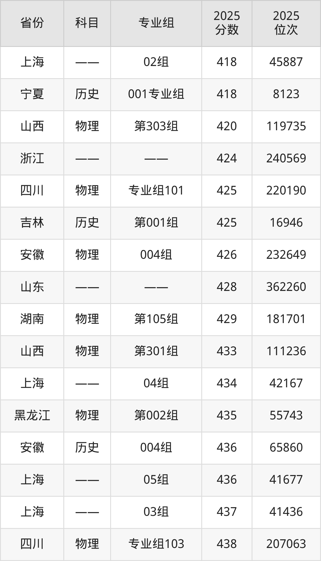 3+3地区:2025年上海杉达学院录取最低分是424分(浙江),对应的位次排名是240569名。