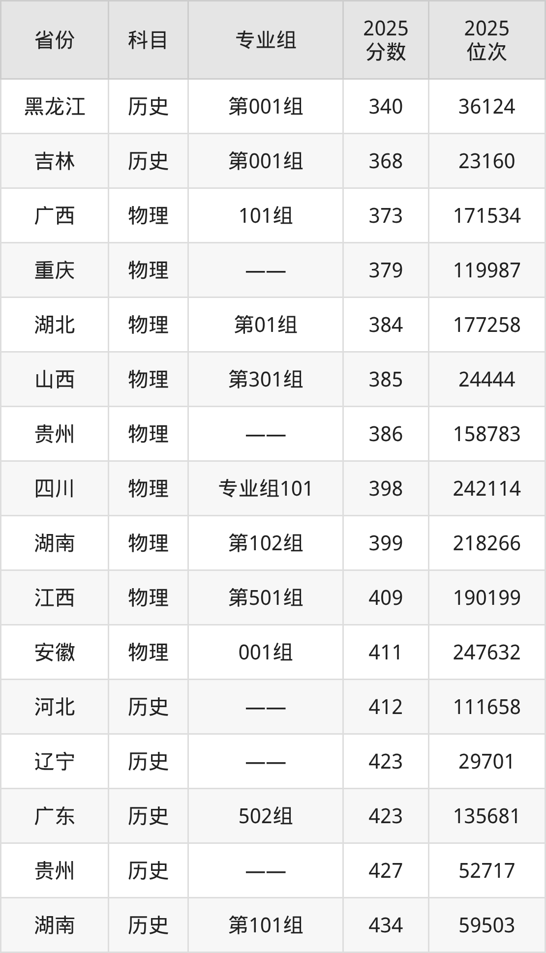 物理类:2025年长沙商贸旅游职业技术学院录取最低分是373分(广西),对应的位次排名是171534名。