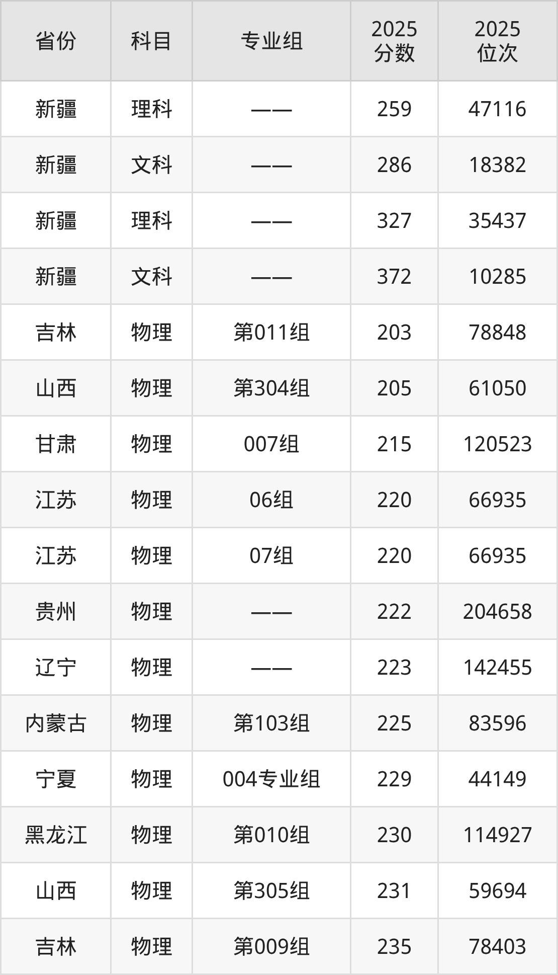 物理类:2025年新疆和田学院录取最低分是203分(吉林),对应的位次排名是78848名。