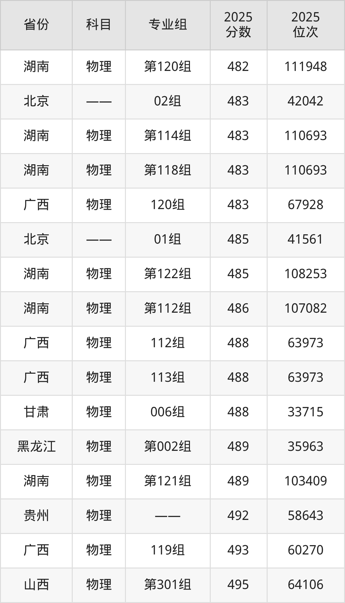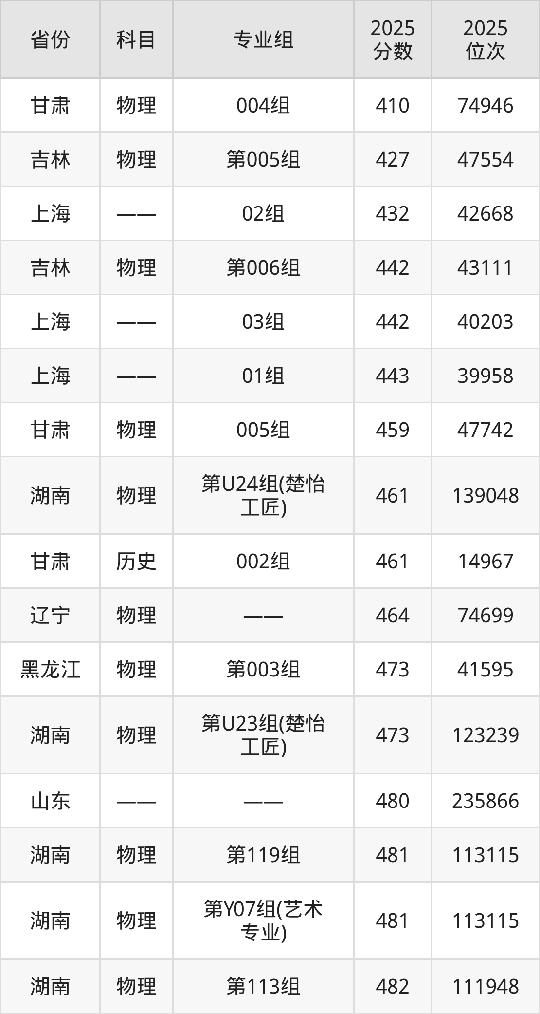 物理类:2025年长沙学院录取最低分是410分(甘肃),对应的位次排名是74946名。