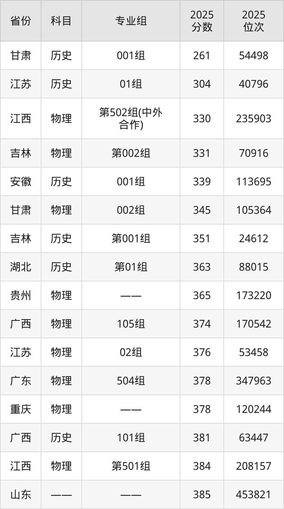 物理类:2025年江西现代职业技术学院录取最低分是331分(吉林),对应的位次排名是70916名。