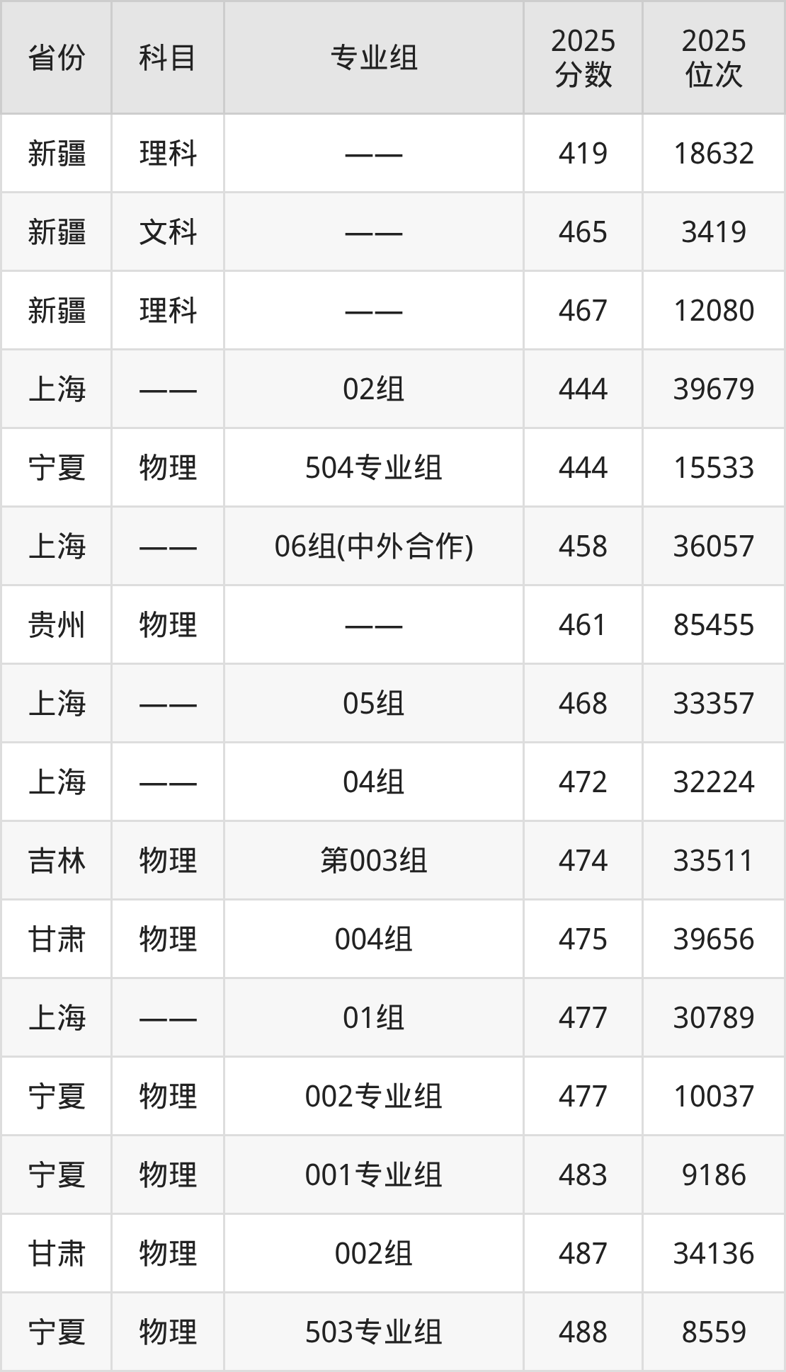 文科:2025年上海应用技术大学录取最低分是465分(新疆),对应的位次排名是3419名。