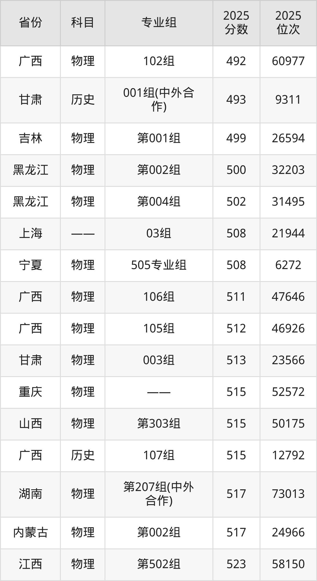 历史类:2025年上海应用技术大学录取最低分是493分(甘肃),对应的位次排名是9311名。